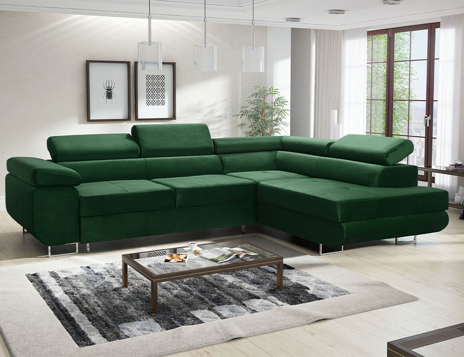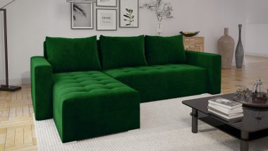 Intensywność butelkowej zieleni szczególnie sprawdzi się w sypialni. To pomieszczenie, które ma wyciszyć, ukołysać do snu. Łóżko kontynentalne w tym kolorze? Czemu nie! To kolor, który nie łapie kurzu i trudno go czymkolwiek zabrudzić. Ciemny odcień zieleni świetnie komponuje się ze spokojnymi, bazowymi kolorami, które często są wybierane do sypialni — w ciemno można do niego dobierać beże, brązy, biel czy écru.