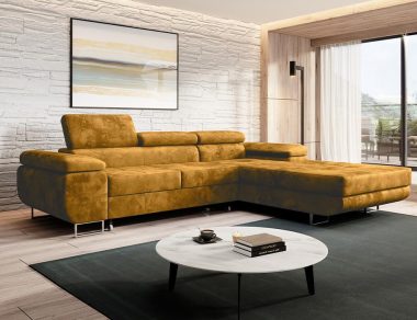 Kolor miodowy i musztardowy różnią się właśnie tonacją i siłą wyrazu. Musztardowy przyciąga wzrok, wprowadza przytulność. Może rozjaśnić niejedno pomieszczenie, a jednocześnie nie sprawia, że stanie się ono przaśne. Nie bez powodu coraz częściej pojawia się w nowoczesnych aranżacjach – jeśli zastanawiasz się, czy kolor musztardowy jest modny, odpowiedź brzmi: zdecydowanie tak, szczególnie jeśli chodzi o meble do salonu.