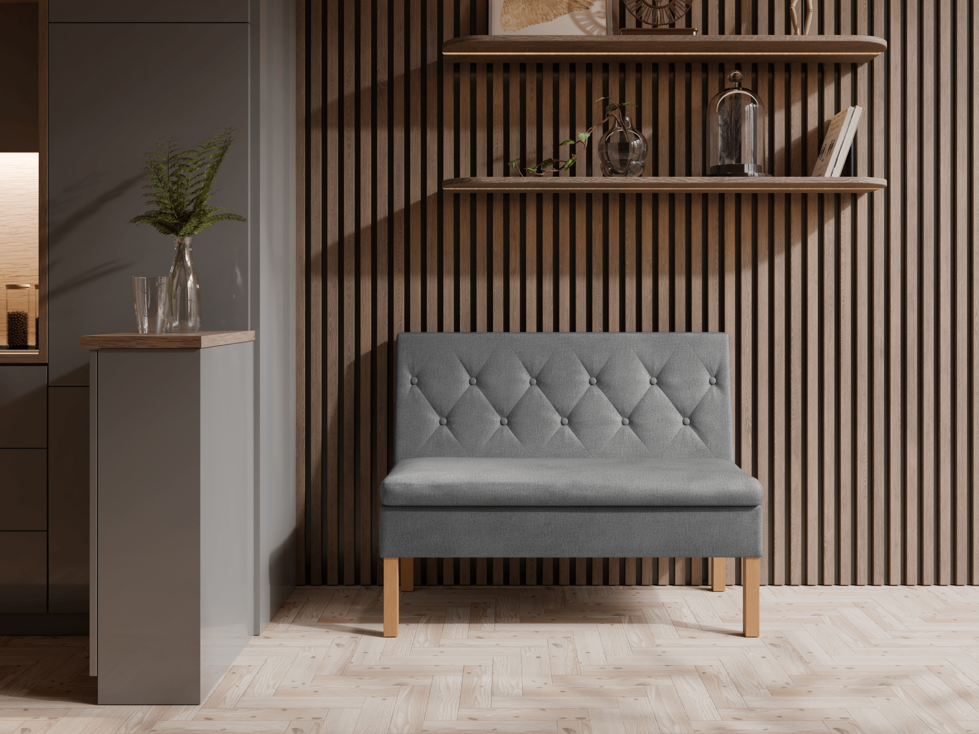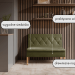 Komfort użytkowania zapewnia wysokiej jakości pianka T30, która gwarantuje trwałość i wygodę na lata. Ławka Praga to także mebel wolnostojący — tył został starannie obity tkaniną, co pozwala ustawić ją w dowolnym miejscu w pomieszczeniu. Do wyboru masz szeroką gamę kolorystyczną oraz możliwość personalizacji — możesz samodzielnie wybrać kolor nóg, co ułatwia dopasowanie ławki do wystroju wnętrza.
