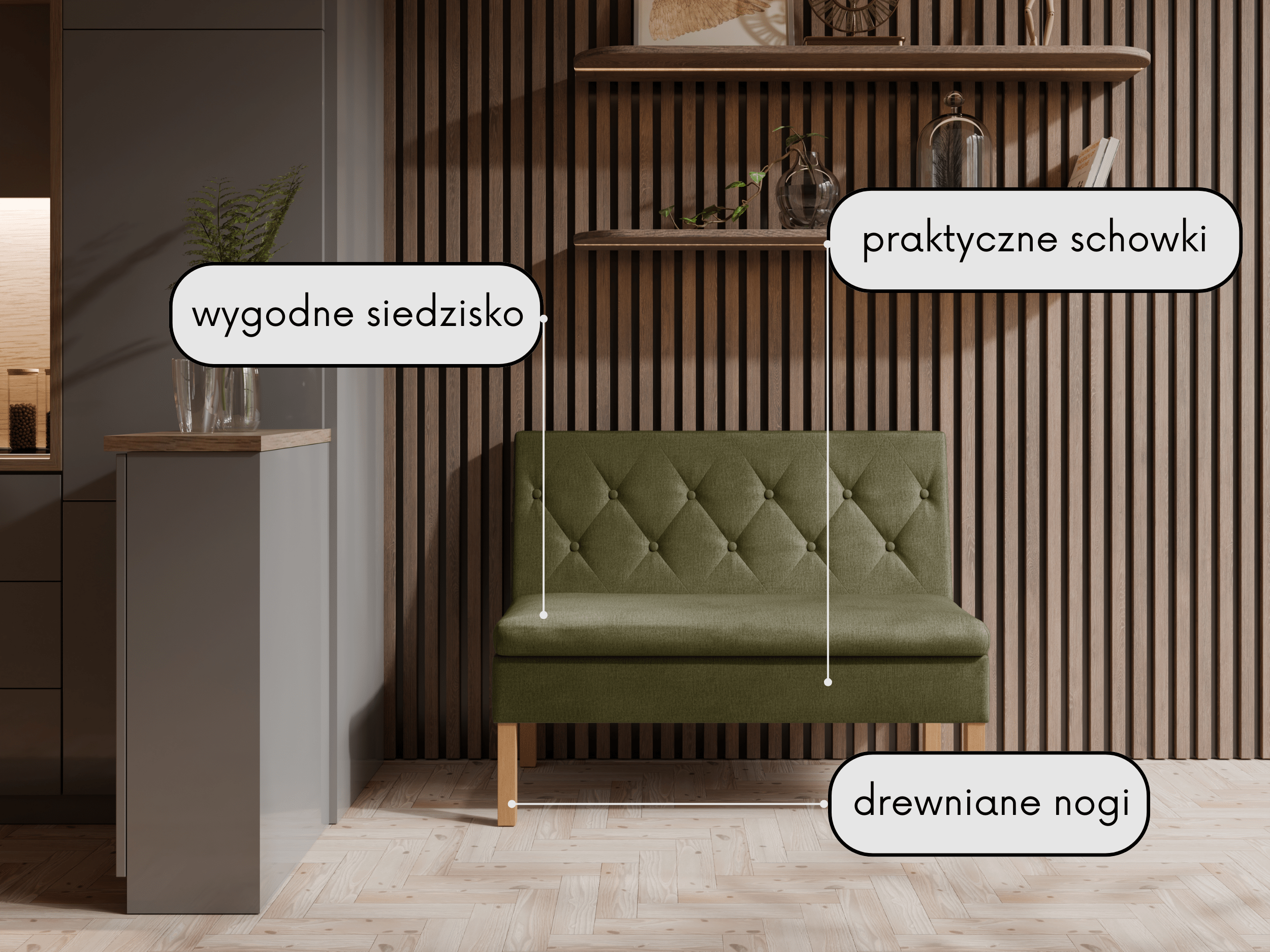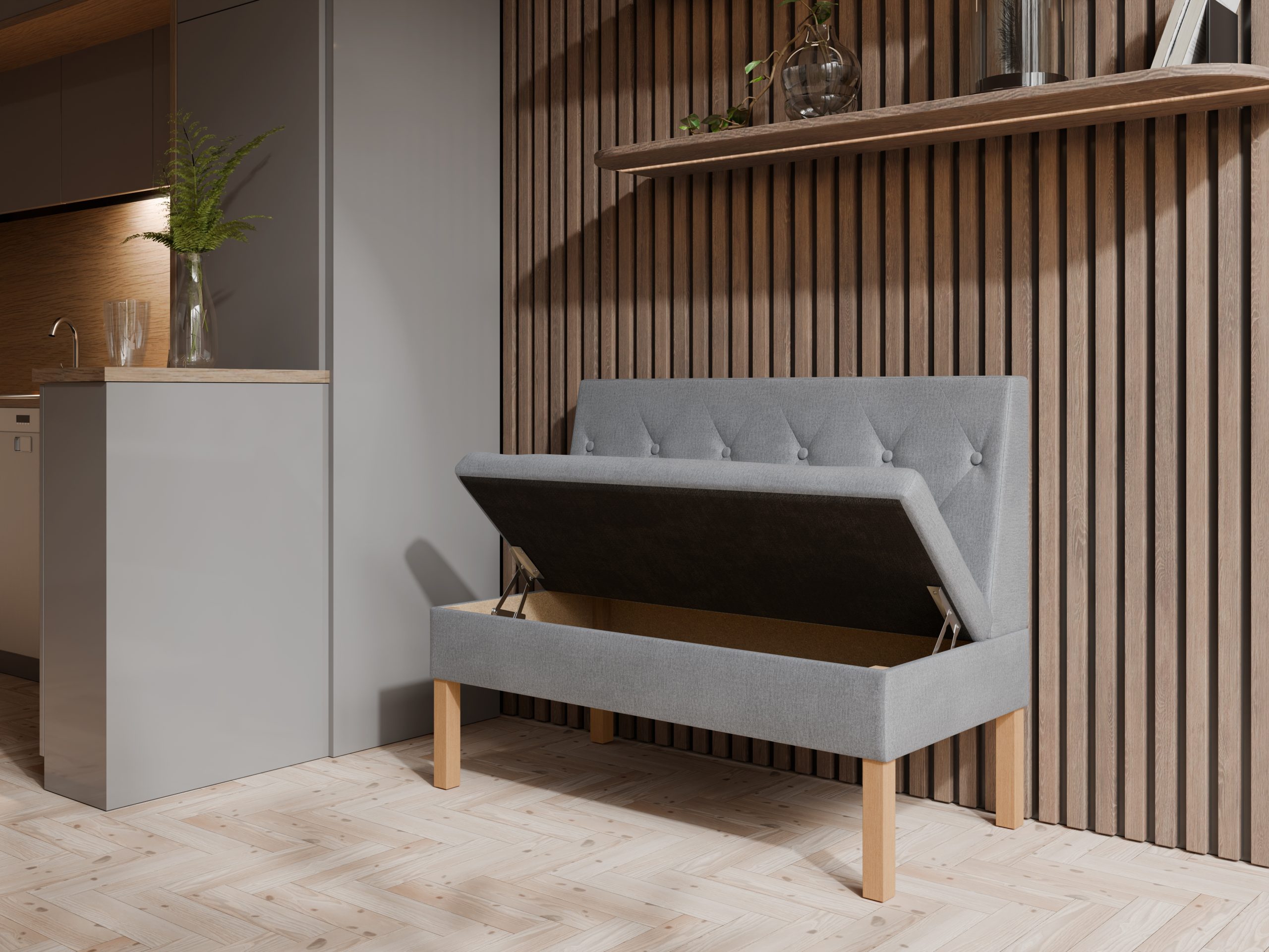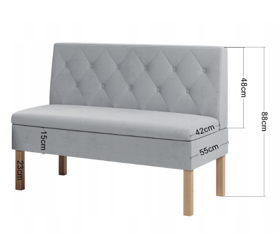 Ławka Praga dostępna jest w wielu wariantach wymiarowych, dzięki czemu łatwo dopasujesz ją zarówno do małych, jak i większych przestrzeni. Praktyczne schowki pod siedziskiem pozwalają na wygodne przechowywanie obuwia, tekstyliów lub innych drobiazgów, pomagając utrzymać porządek w przedpokoju czy kuchni.