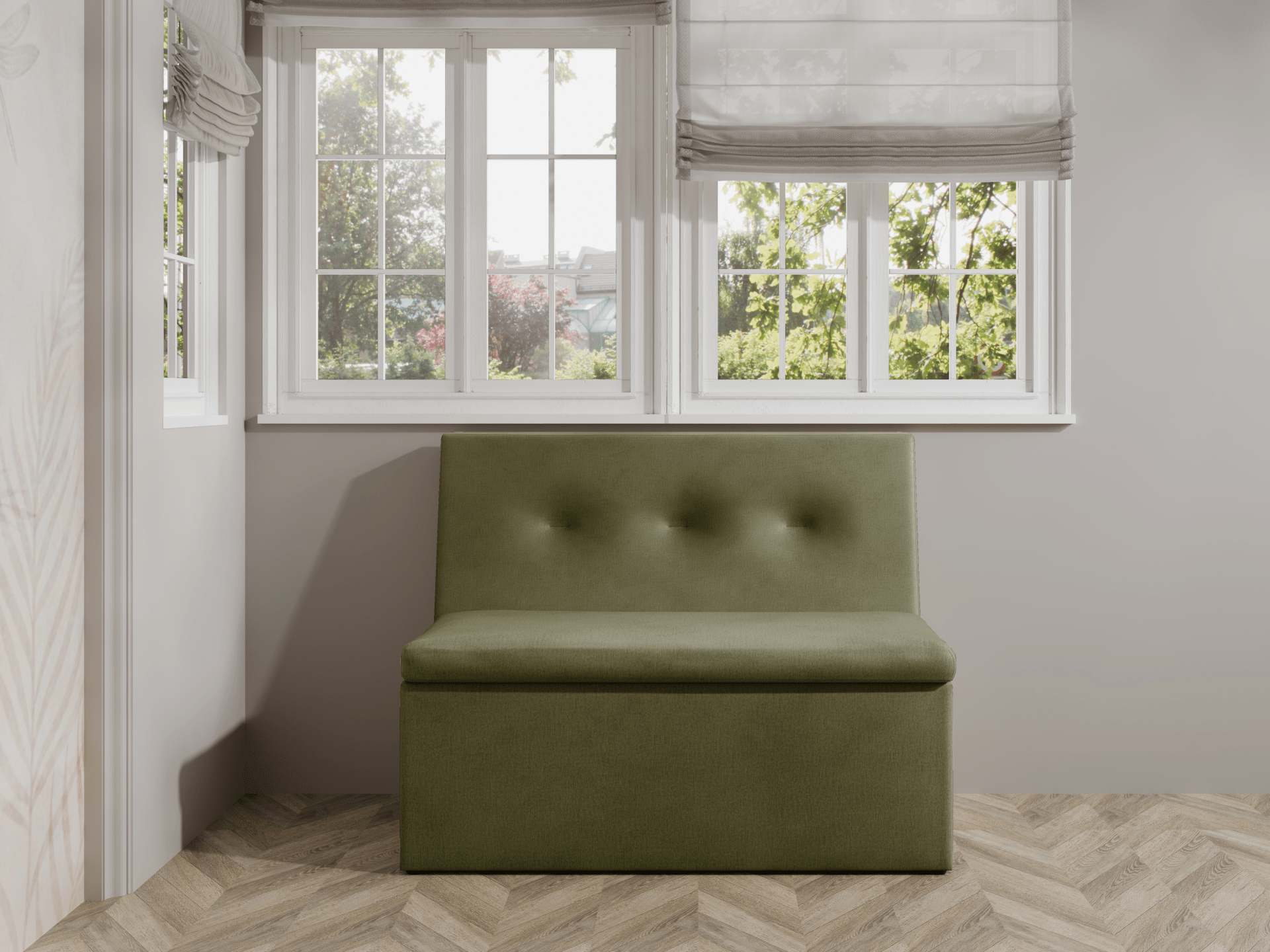 Ławka tapicerowana London 100×55 ze schowkiem oliwkowy welur