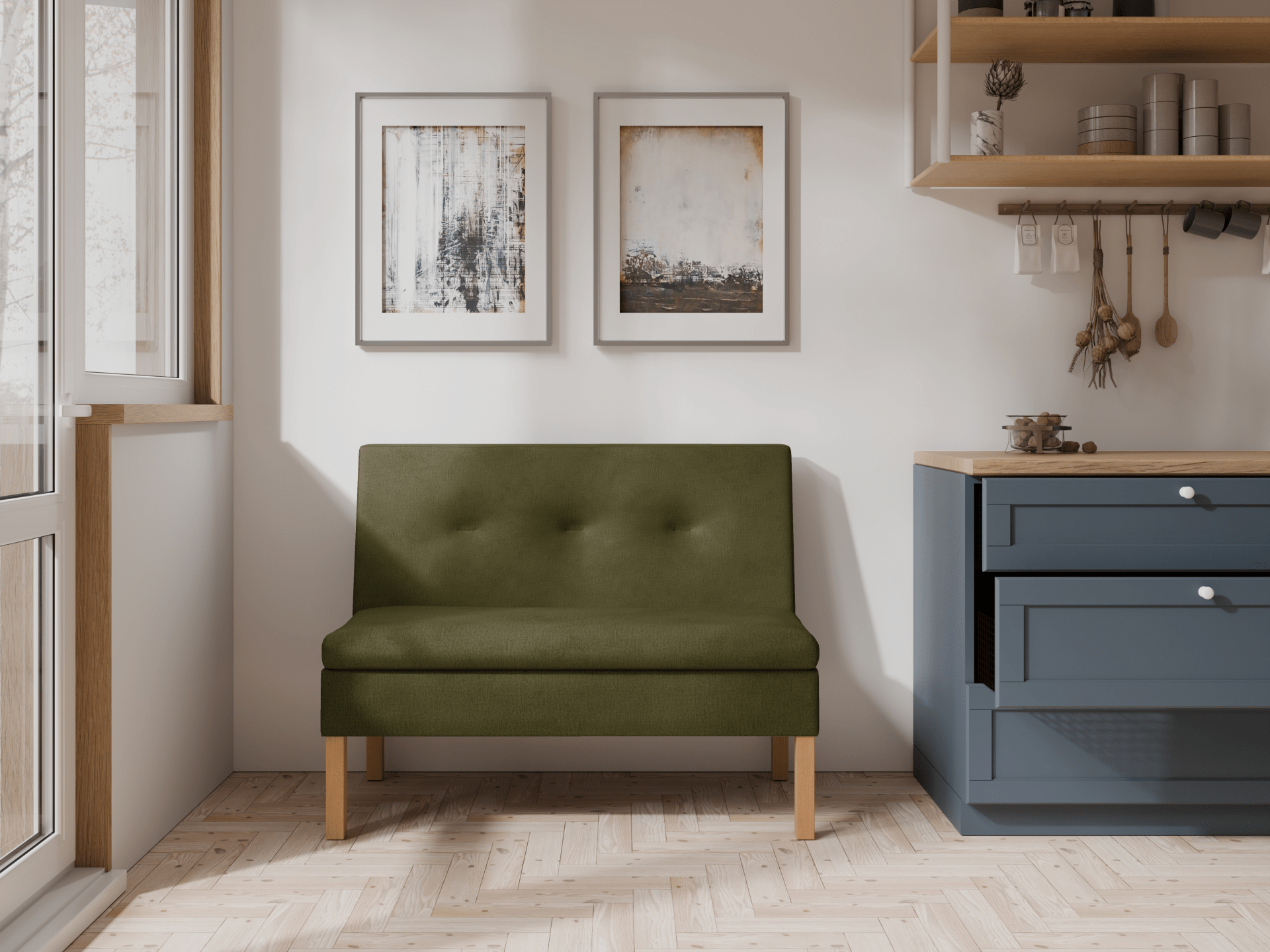 • Mebel wolnostojący – tył ławki obity tą samą tkaniną, co przód, dzięki czemu świetnie prezentuje się w każdym ustawieniu.