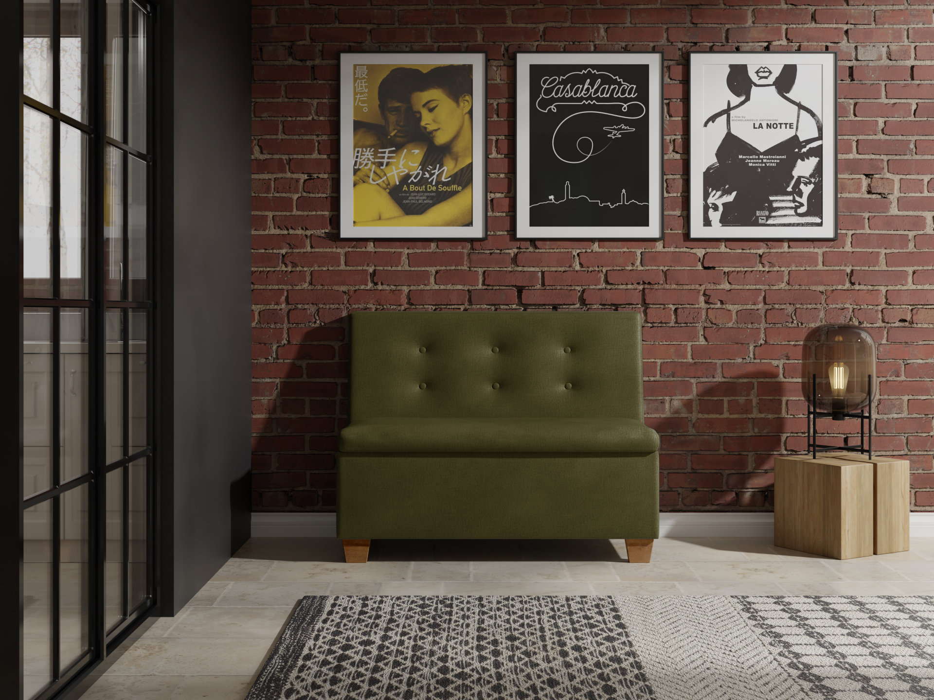To ławka wolnostojąca, z tyłem estetycznie obitym tkaniną, co pozwala na ustawienie jej nie tylko przy ścianie, ale także w centralnym punkcie pomieszczenia. W standardzie oferujemy mocną, wytrzymałą tapicerkę w cenie — do wyboru szeroka gama kolorów i tkanin, dzięki czemu Twoja ławka do siedzenia z pojemnikiem będzie pasować do każdego stylu: od klasycznego, przez skandynawski, po nowoczesny.