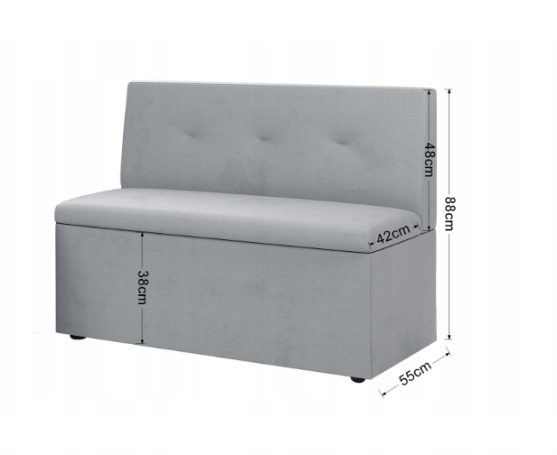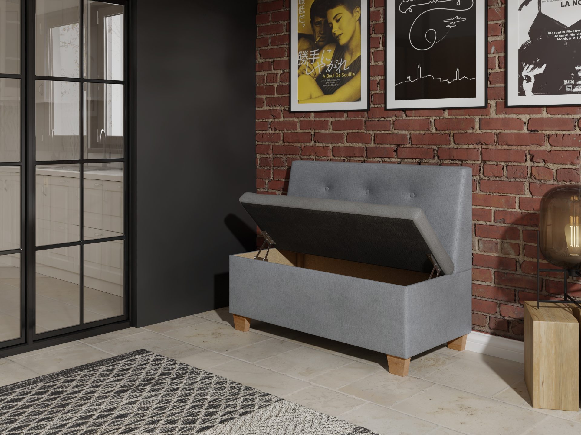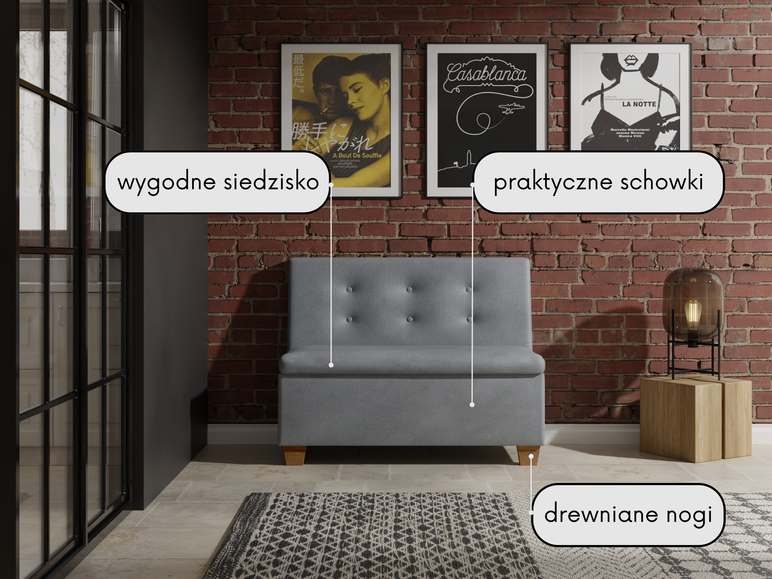 Ławka z pojemnikiem pod siedziskiem oferuje praktyczne schowki na buty, torebki, akcesoria i tekstylia. Dzięki zastosowaniu wysokiej jakości pianki T30, siedzisko jest miękkie, wygodne i odporne na odkształcenia — idealne do codziennego użytku. Nasza ławka tapicerowana do przedpokoju jest dostępna w wielu rozmiarach, dzięki czemu łatwo dopasujesz ją do swojego wnętrza, niezależnie od tego, czy urządzasz mały korytarz, dużą kuchnię czy nowoczesny salon.