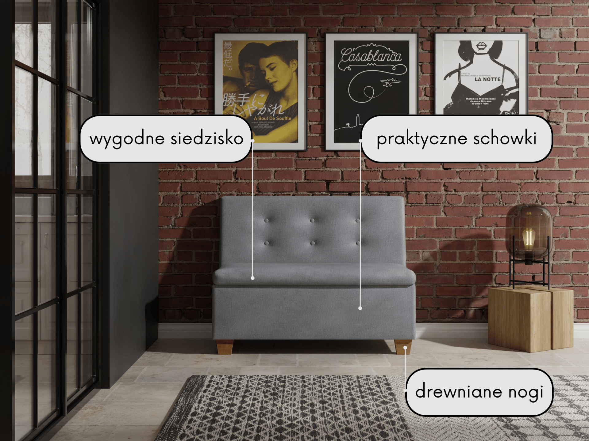 Ławka Barcelona do kuchni i przedpokoju z pojemnikiem — praktyczny mebel z funkcją schowka