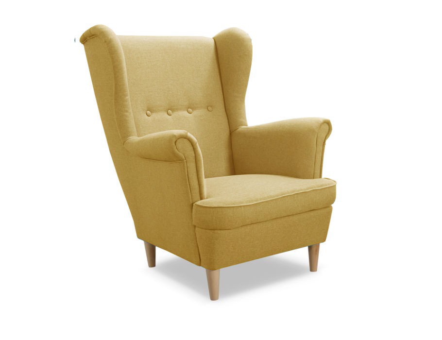 Nasycony musztardowy odcień tapicerki natychmiast ożywia aranżację. Wprowadza do pomieszczenia mnóstwo ciepła i pozytywnej energii. Kolor ten pięknie komponuje się z naturalnym drewnem, bielą oraz odcieniami szarości. Musztardowy fotel Uszak jest nie tylko miejscem relaksu, lecz również stylową dekoracją wnętrza.