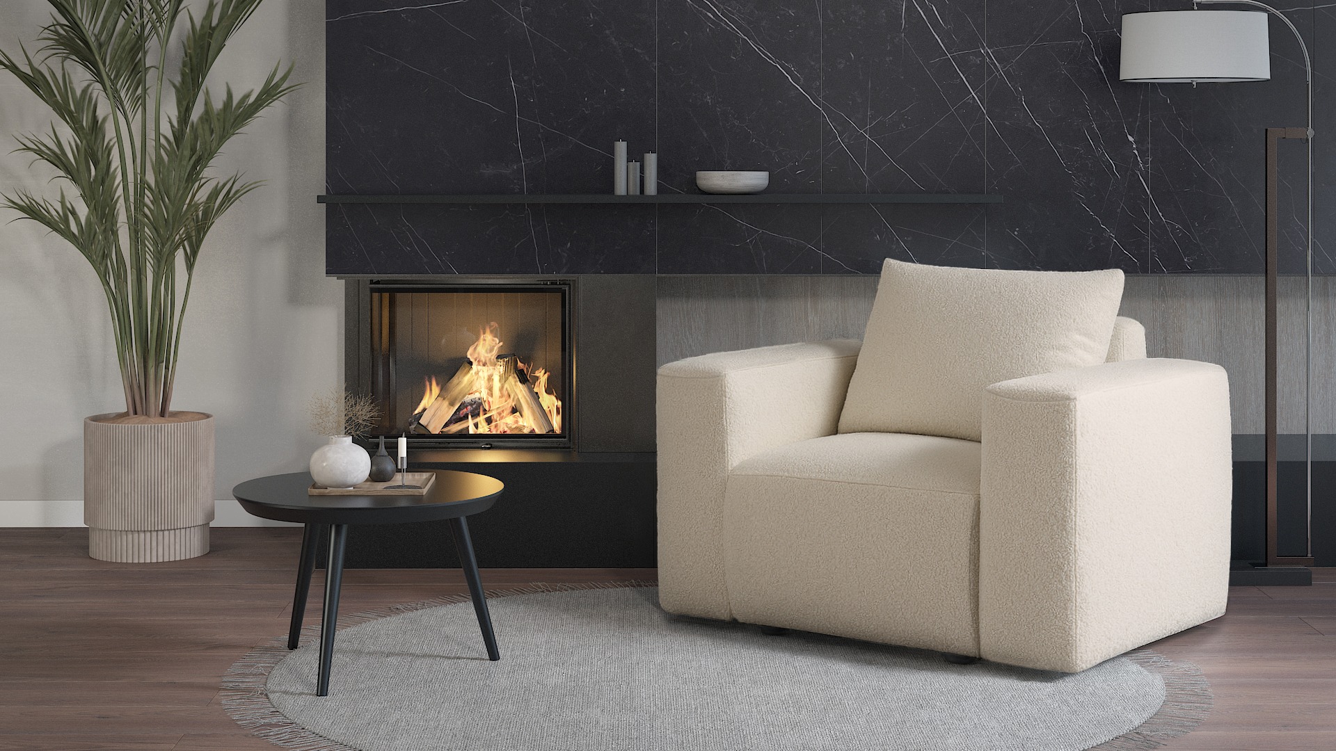 Fotel Lambi ciemnokremowy boucle