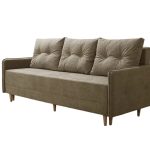 Jej prosty, uniwersalny design doskonale wpisuje się w aranżacje nowoczesne oraz klasyczne. Jasny, beżowy odcień tkaniny Soro otula przestrzeń ciepłem i spokojem, tworząc idealne tło dla relaksu. Prosta bryła mebla opiera się na wysokich nóżkach z naturalnego drewna bukowego. Nadają one całej konstrukcji wizualnej lekkości. Co ważne, tapicerowany tył pozwala swobodnie ustawić ją w dowolnym miejscu salonu, nie tylko przy ścianie.