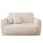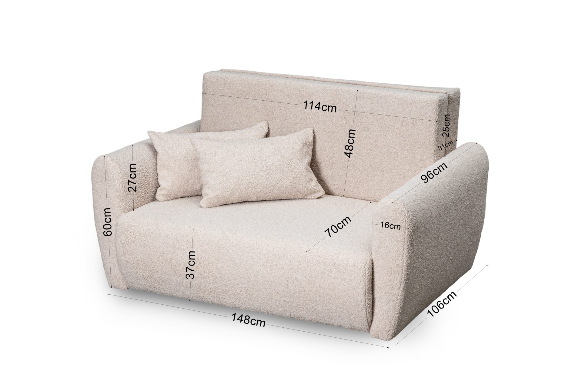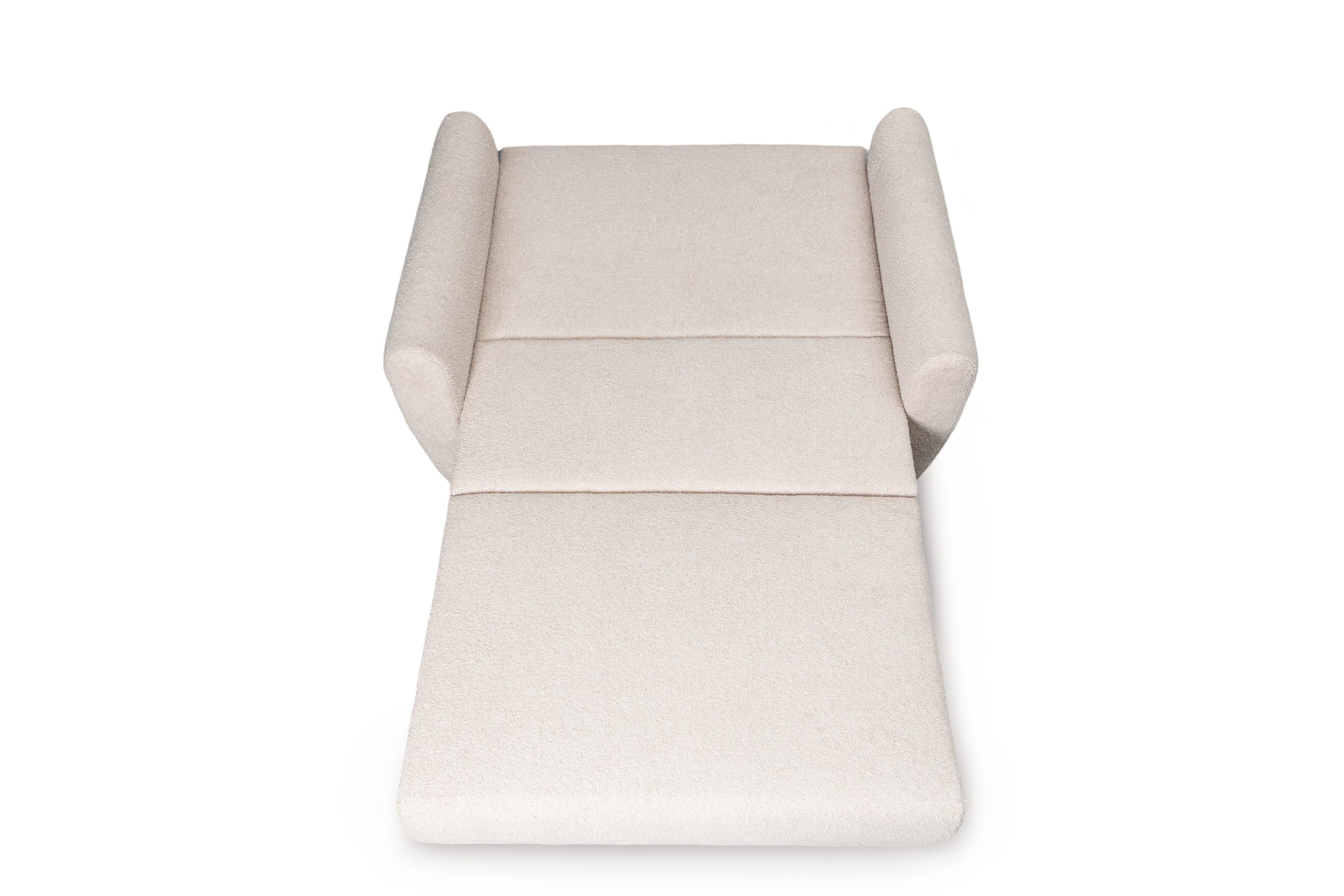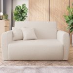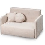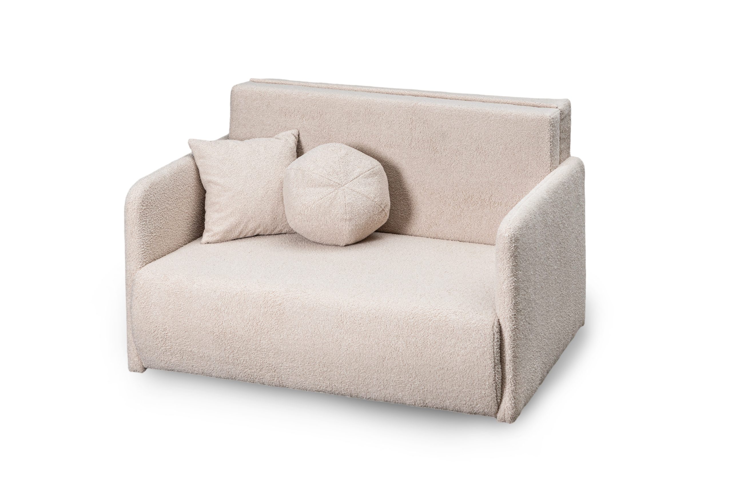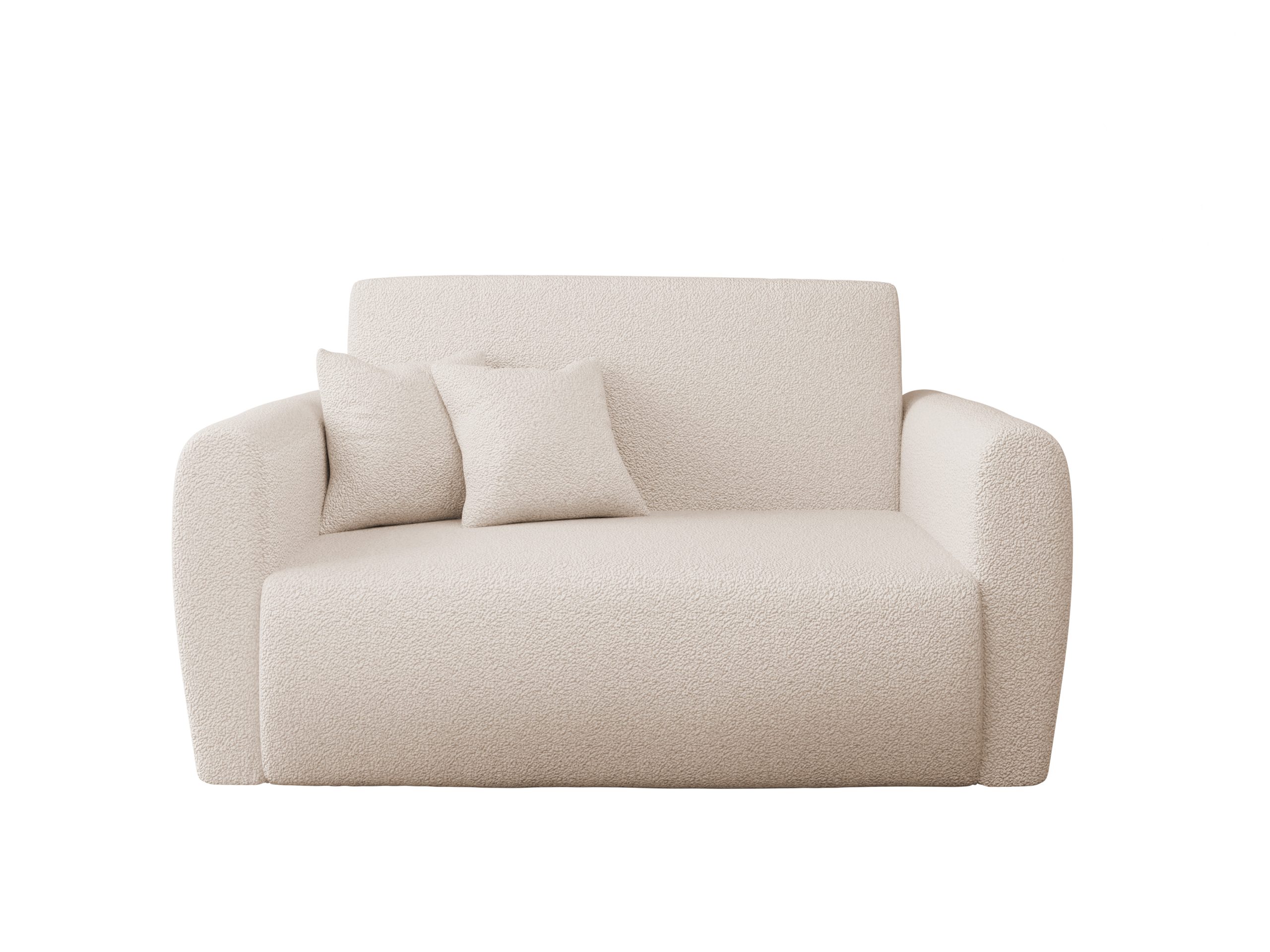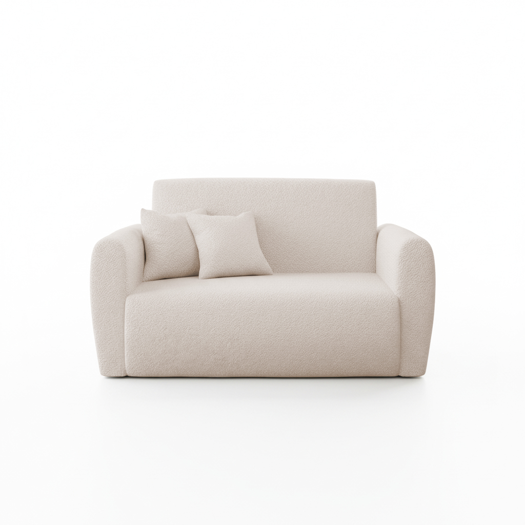 Jej nowoczesny, lekki design doskonale wpisuje się we wnętrza skandynawskie, minimalistyczne lub młodzieżowe. Kremowy kolor tapicerki wprowadza do pomieszczenia poczucie subtelnego ciepła i spokoju. Dzięki temu salon staje się optycznie jaśniejszy i bardziej przytulny. Charakterystyczna pętelkowa faktura materiału Lambi dodaje jej wizualnej miękkości. Całość wspiera się na prostych, czarnych nóżkach.