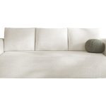 Jej prosty, nowoczesny kształt doskonale pasuje do wnętrz w stylu boho oraz minimalistycznym. Ciepły, kremowy odcień tapicerki rozjaśnia pomieszczenie. Wnosi do niego atmosferę spokoju i naturalnej elegancji. Dlatego kanapa świetnie komponuje się z drewnianymi meblami, zielenią roślin i stonowanymi kolorami ziemi. Co ważne, jej tył został w całości obity tkaniną. Pozwala to na ustawienie mebla w dowolnym miejscu, nawet na środku pokoju.