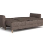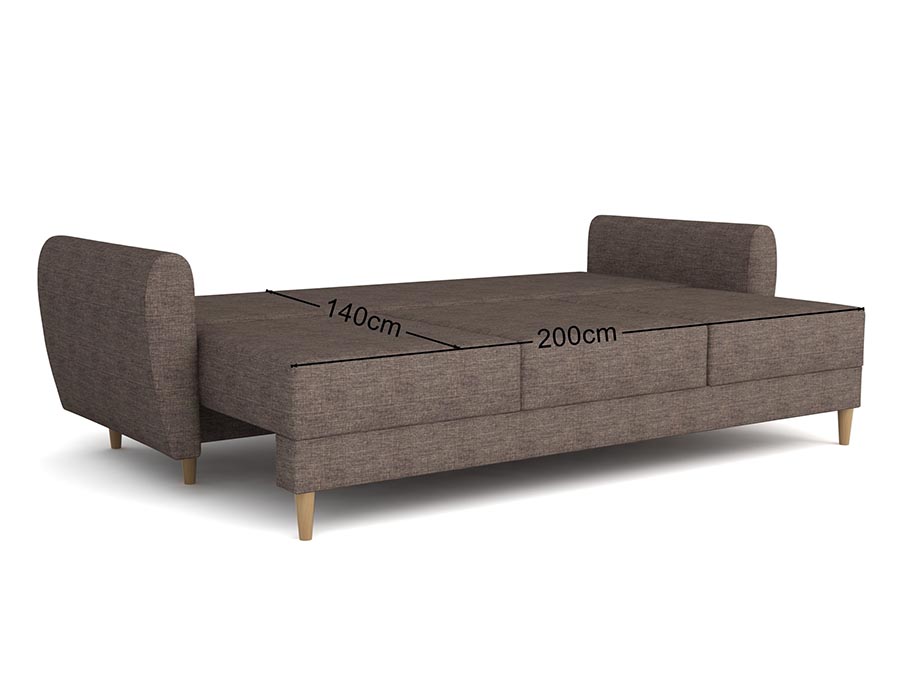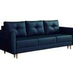 Kanapa Manstad doskonale adaptuje się do rytmu życia domowników. Prosty w obsłudze mechanizm DL pozwala szybko zmienić ją w wygodne łóżko dla gości. W ten sposób salon w mgnieniu oka staje się przyjazną przestrzenią do noclegu. Duży pojemnik na pościel pomaga z kolei w utrzymaniu porządku. Schowasz w nim dodatkowe koce, poduszki czy inne tekstylia. Granatowa kanapa Manstad pokryta jest welurową tkaniną o wyjątkowych właściwościach. Materiał utrudnia wchłanianie cieczy, dlatego przypadkowo rozlany napój nie stanowi problemu. Jest również przyjazny zwierzętom i łatwy w czyszczeniu, co docenią właściciele czworonogów.