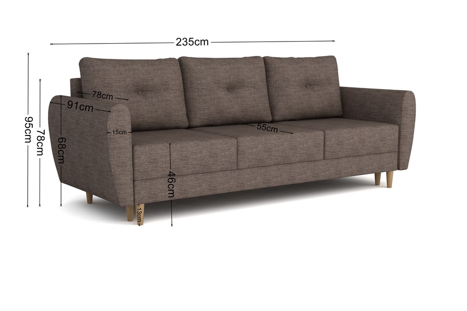 Komfort codziennego użytkowania zapewniają siedziska wypełnione sprężynami falistymi oraz pianką. Są one elastyczne i odporne na odkształcenia. Dlatego kanapa jest idealnym miejscem do popołudniowego relaksu z książką lub wieczornych seansów filmowych. Wygodne oparcie tworzą trzy duże poduszki. Można je swobodnie układać, aby znaleźć najwygodniejszą pozycję do odpoczynku.