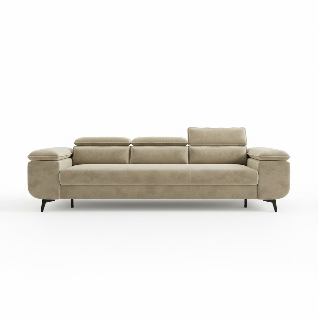 Kanapa Flat została stworzona z myślą o codziennym komforcie. W siedzisku zastosowano sprężyny faliste i elastyczną piankę, które zapewniają wygodę i trwałość użytkowania. Regulowane zagłówki pozwalają dopasować podparcie do indywidualnych potrzeb, zwiększając komfort relaksu.