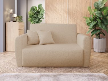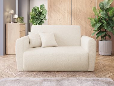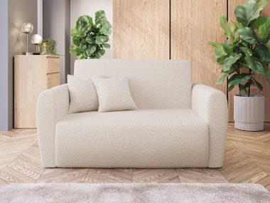 3. Trwałość i wygoda: Materiał boucle jest nie tylko estetyczny, ale także wytrzymały i odporny na codzienne użytkowanie. Kanapy wykonane z tej tkaniny są miękkie, a jednocześnie bardzo trwałe, co czyni je doskonałym wyborem na lata.