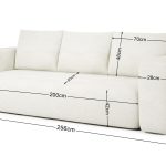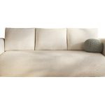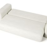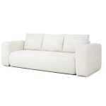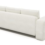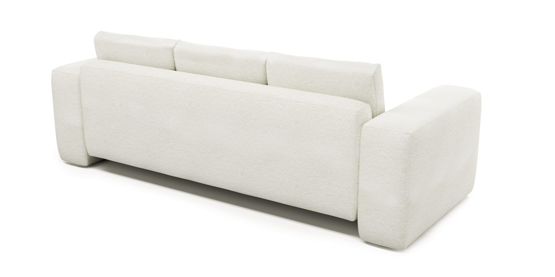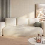 Prosta, nowoczesna forma mebla doskonale wpisuje się w aranżacje w stylu boho lub skandynawskim. Ciepły, ciemnokremowy odcień tapicerki optycznie rozjaśnia wnętrze, tworząc w nim spokojną i przytulną atmosferę. Co ważne, tył kanapy również został obity materiałem. Dlatego może ona stać w centralnym punkcie pokoju, stanowiąc główny element aranżacji.