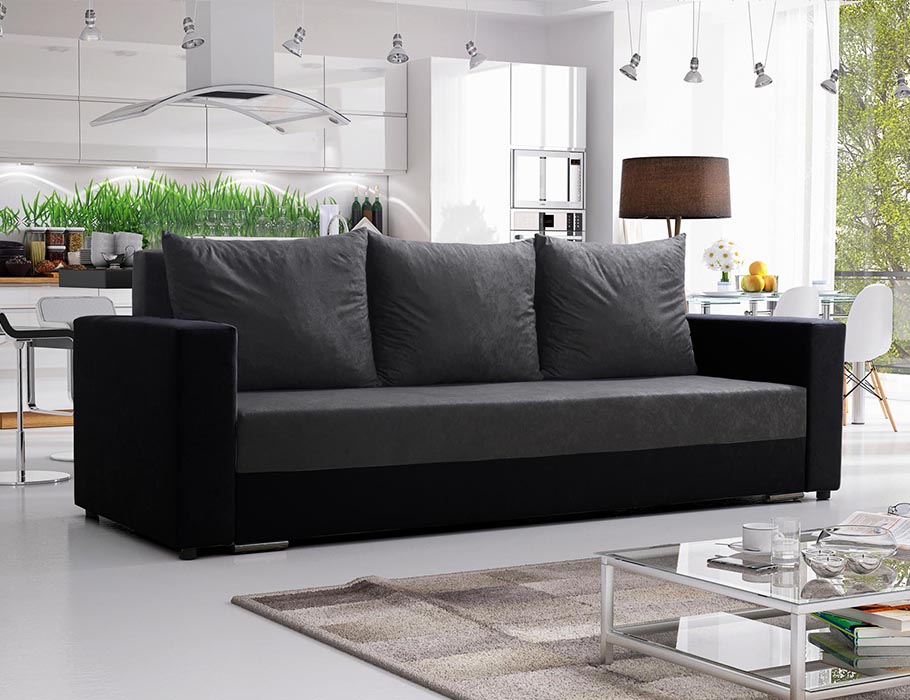 Kanapa Mojito jest przygotowana na potrzeby domowników i ich gości. Posiada funkcję spania, którą można łatwo aktywować. W ten sposób salon w kilka chwil zamienia się w komfortową sypialnię. Pojemny schowek pod siedziskiem to z kolei idealne miejsce na pościel lub dodatkowe koce. Co ważne, tkanina jest niezwykle praktyczna i stanowi odpowiedzialny wybór dzięki swoim ekologicznym właściwościom. Jej struktura ułatwia czyszczenie wodą, co pozwala bezstresowo cieszyć się codziennym użytkowaniem.