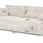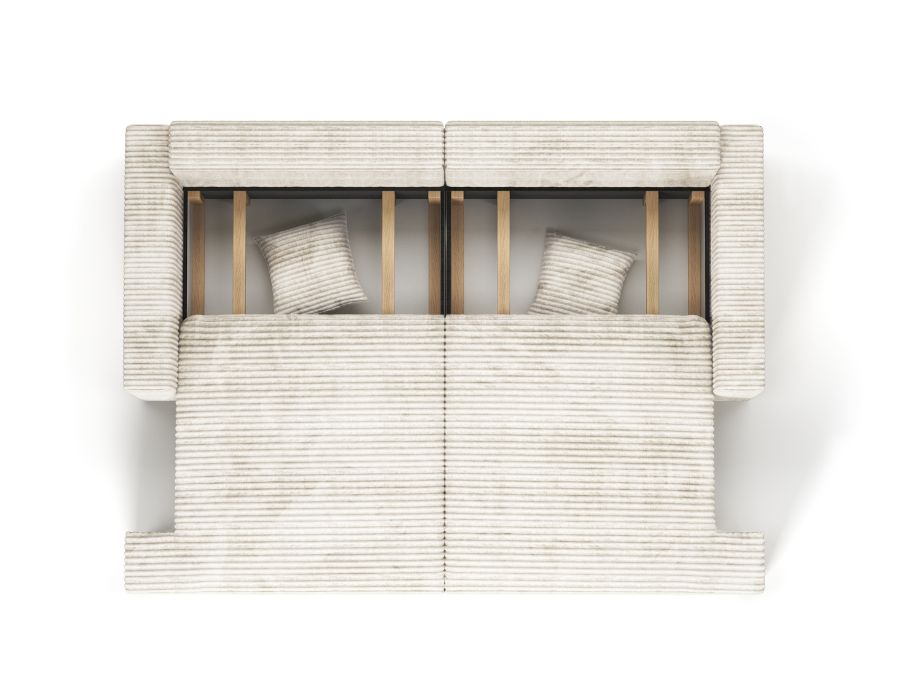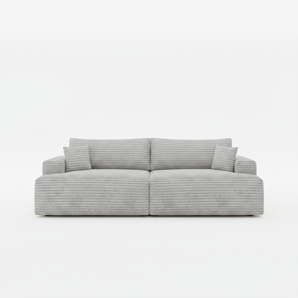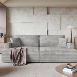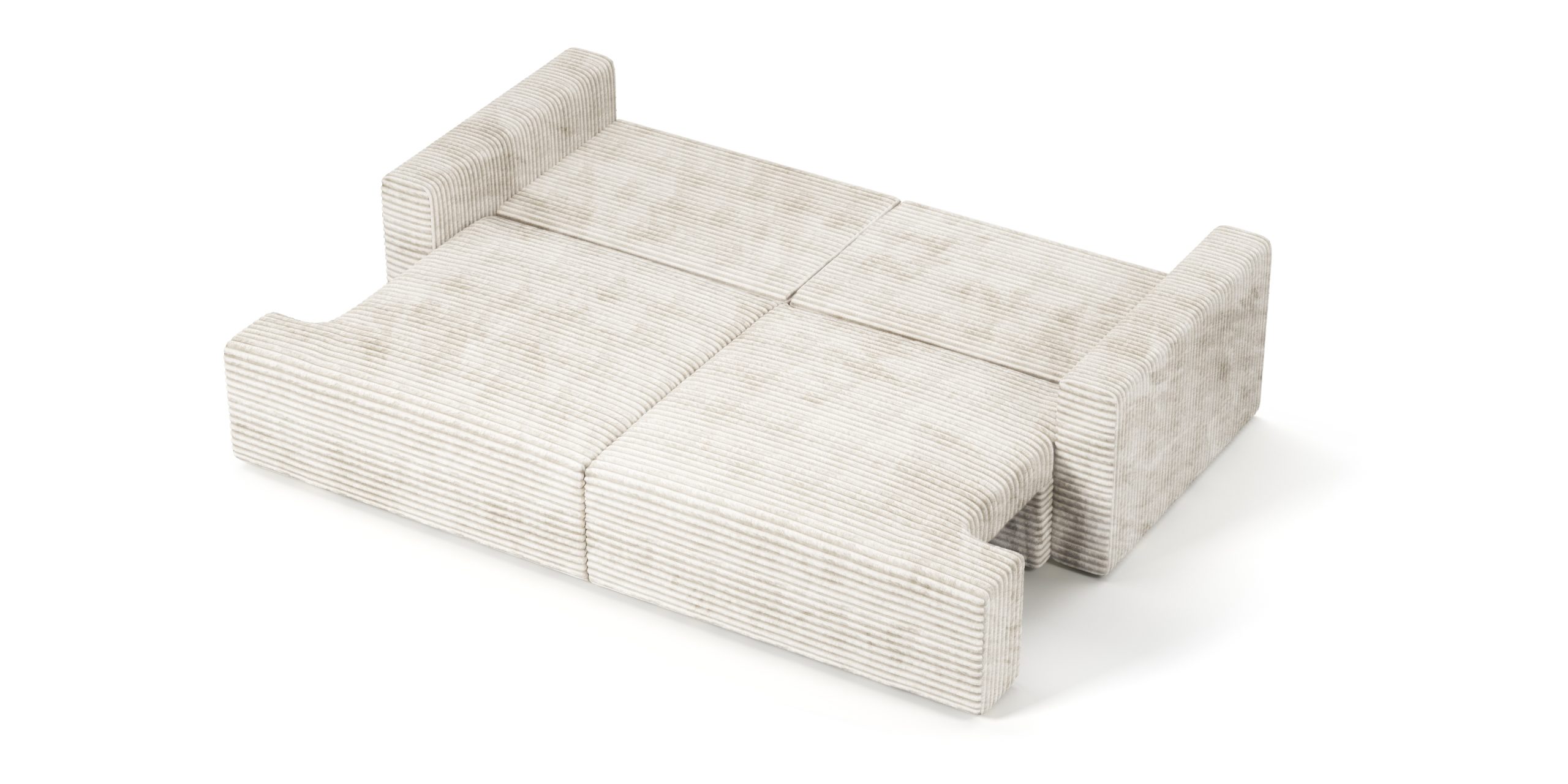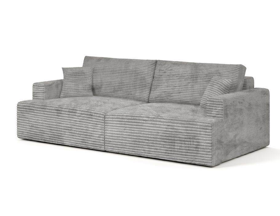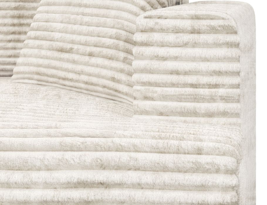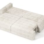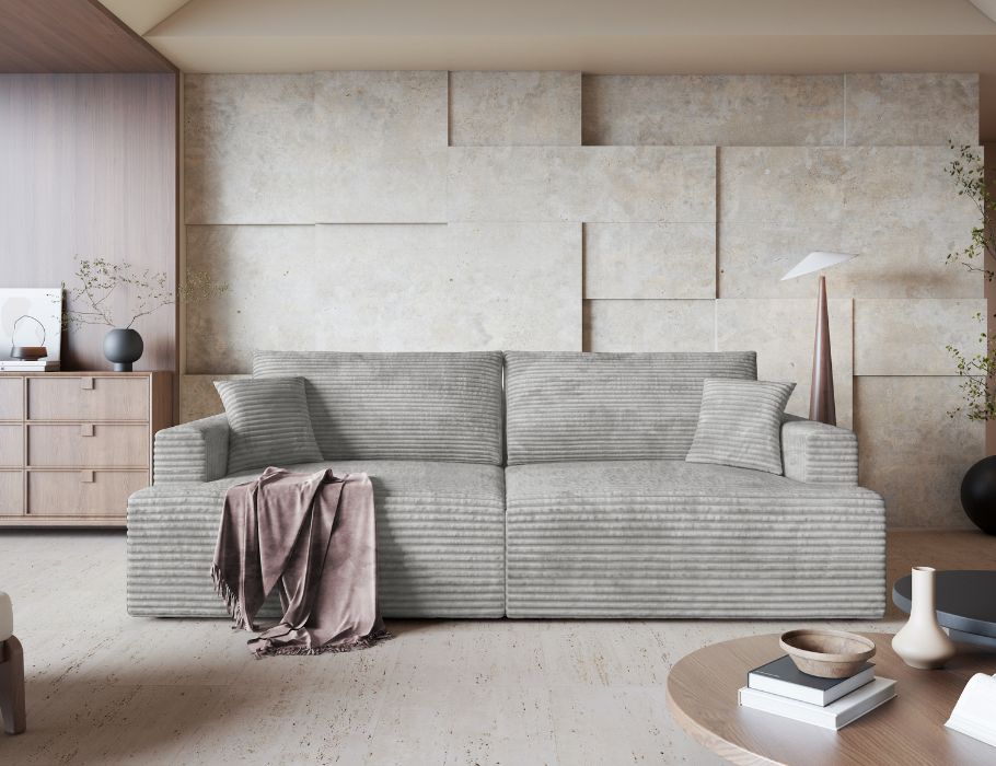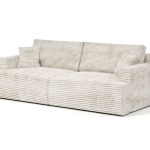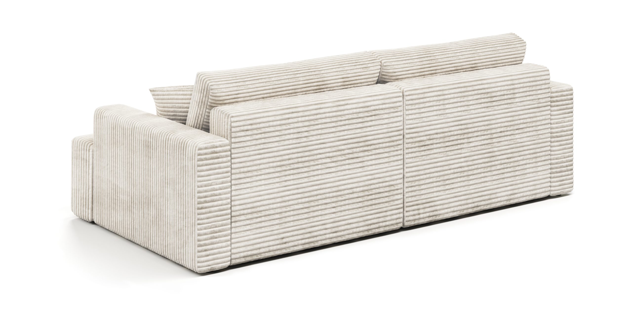 O codzienny komfort dbają siedziska wypełnione sprężynami falistymi i pianką. Zapewniają one stabilne podparcie podczas codziennego relaksu. Cztery duże poduszki oparciowe pozwalają wygodnie ułożyć się z książką lub w trakcie wieczornego seansu filmowego. Sztruksowa tkanina jest nie tylko przyjemna w dotyku. Jest także przyjazna zwierzętom i środowisku. Jej struktura utrudnia wchłanianie cieczy, a ewentualne zabrudzenia można łatwo usunąć samą wodą.