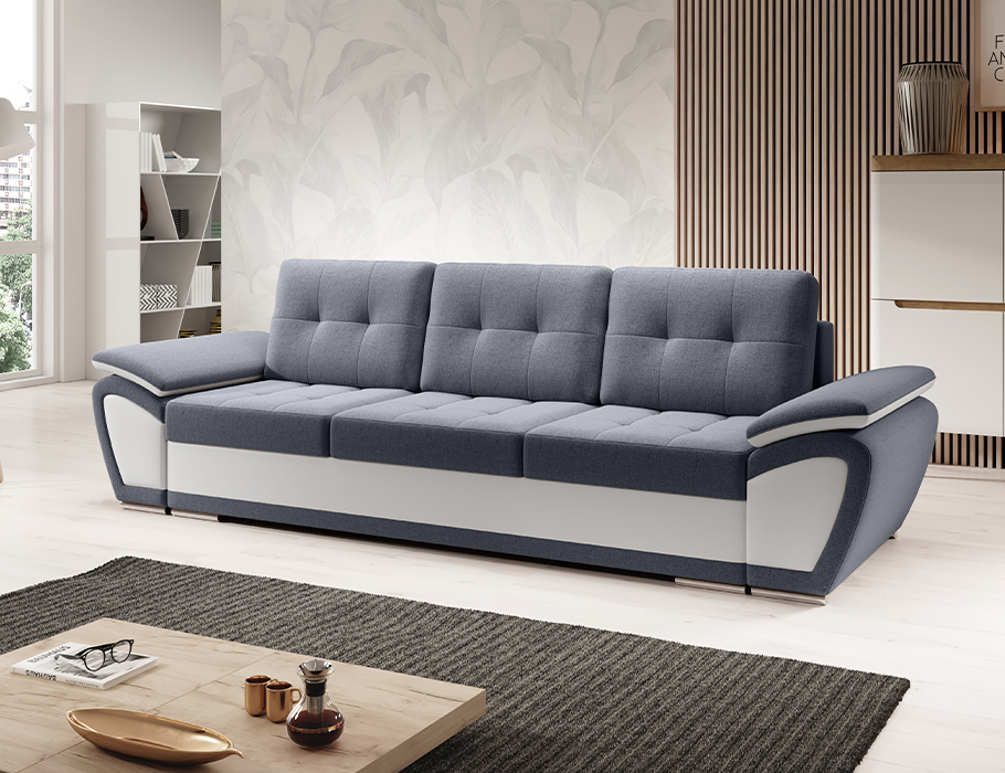 Grafitowo-biała kanapa Enzo zamieni każdy salon w stylową i funkcjonalną przestrzeń. To mebel, który staje się centrum domowego życia, oferując komfort na co dzień i gotowość na każdą okazję.
