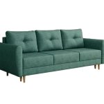 Siedzisko wypełnione sprężynami falistymi zapewnia stabilne i wygodne podparcie. Gwarantuje komfort podczas codziennego wypoczynku. Trzy duże poduszki oparciowe pozwalają swobodnie się zrelaksować z książką lub podczas filmowego seansu. Co ważne, tył kanapy jest w całości tapicerowany. Dzięki temu mebel można ustawić w dowolnym miejscu, nawet na środku pokoju.