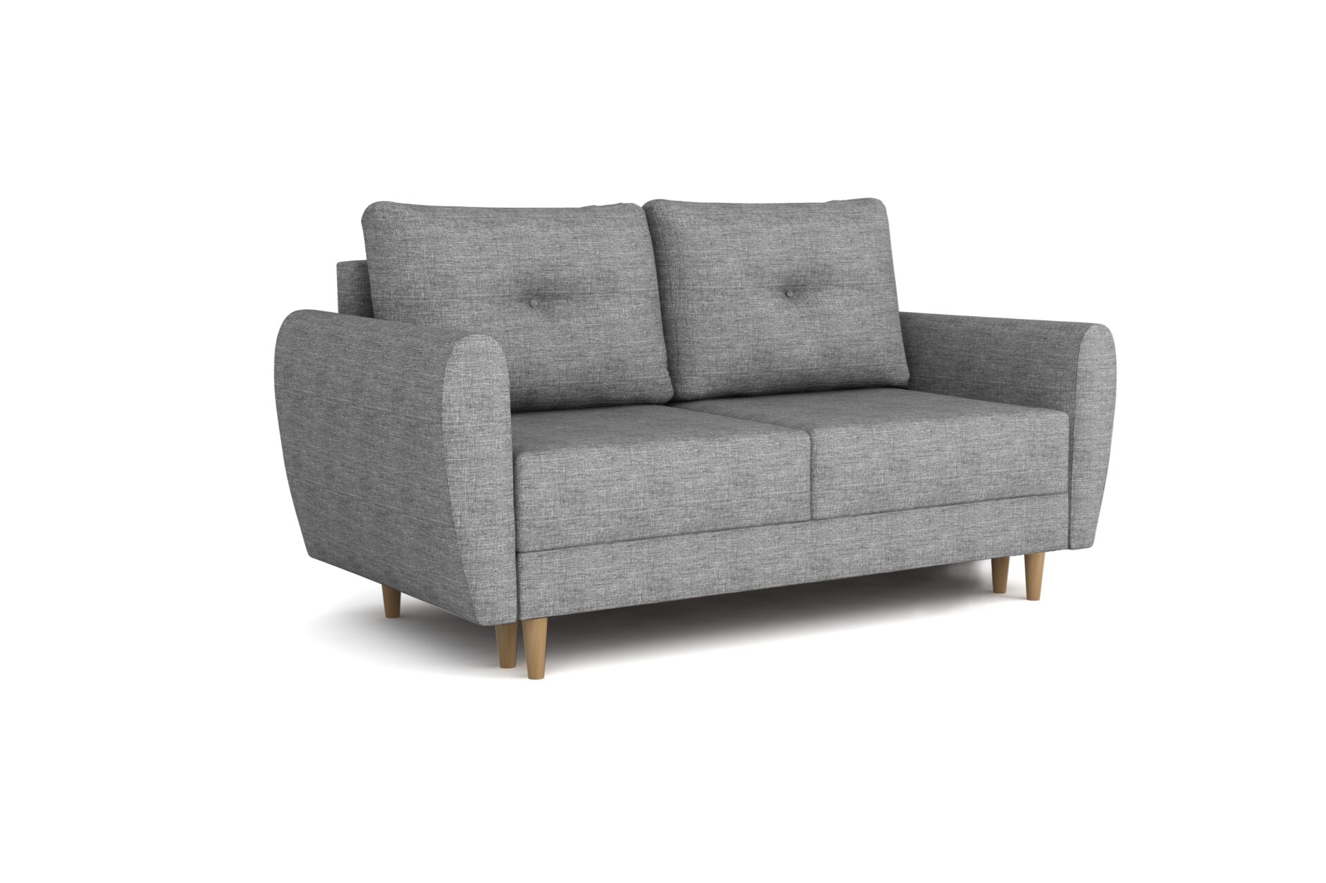 Siedzisko wypełnione sprężynami falistymi oraz elastyczną pianką zapewnia wysoki komfort na co dzień. Można na nim wygodnie odpocząć po długim dniu pracy lub zanurzyć się w lekturze. W komplecie znajdują się dwie duże poduszki, które dają przyjemne podparcie plecom. Co ważne, tył mebla również został obity tkaniną. W ten sposób kanapa prezentuje się nienagannie z każdej strony i może stanąć nawet na środku pokoju.