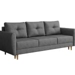 Jej prosty, skandynawski design opiera się na lekkiej formie i ponadczasowej estetyce. Wysokie nóżki z naturalnego drewna dodają jej wizualnej lekkości, a także ułatwiają utrzymanie czystości pod meblem. Ciemnoszary odcień tapicerki wprowadza do salonu atmosferę spokoju i stonowanej elegancji. Dlatego kanapa stanowi idealną bazę dla różnorodnych aranżacji, od minimalistycznych po bardziej klasyczne. Dzięki tapicerowanemu tyłowi można ją swobodnie ustawić w centralnym punkcie pokoju.