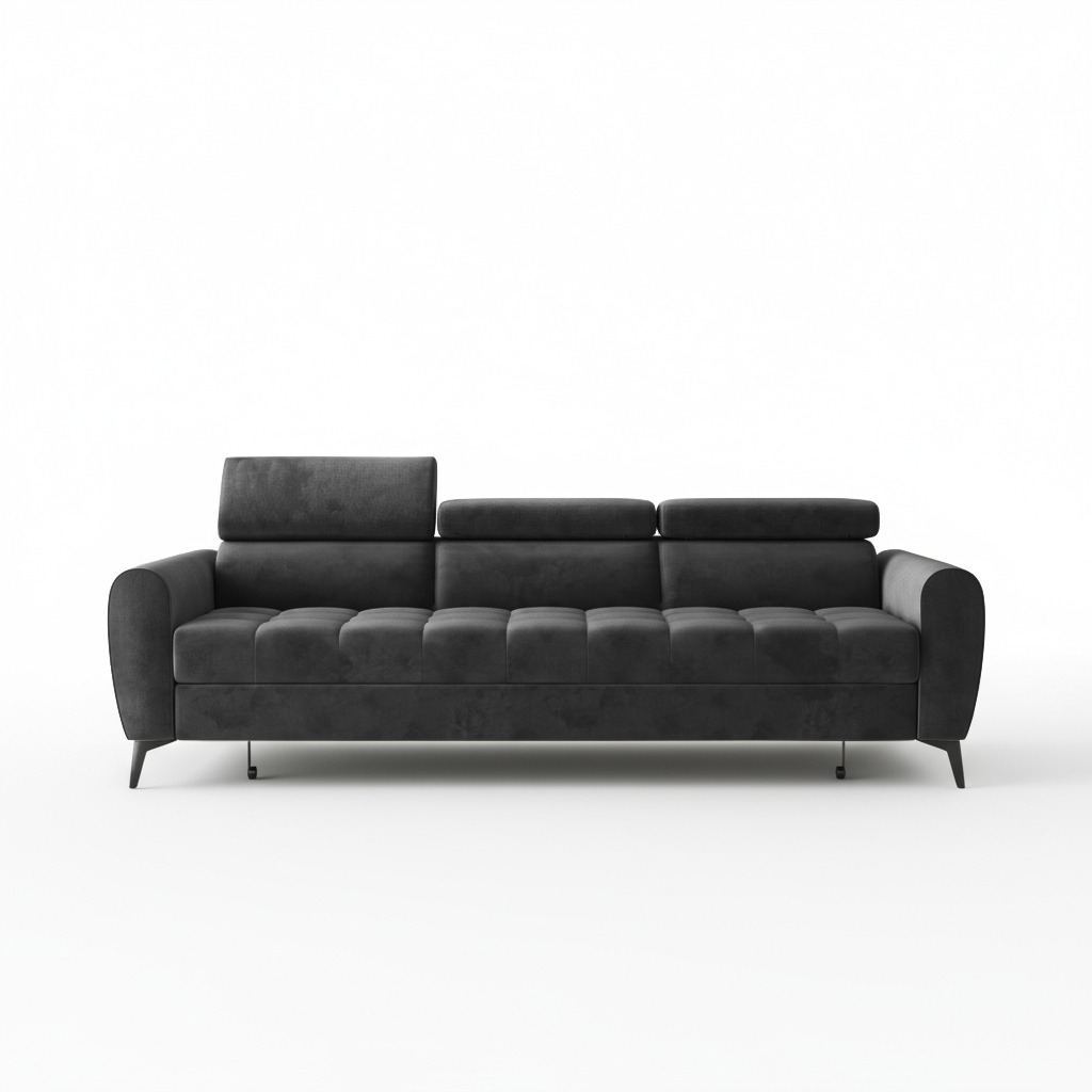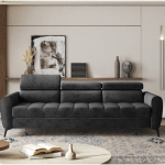 Kanapa Bjorn zaskakuje również swoją funkcjonalnością. Rozkładanie za pomocą automatu Delfin pozwala szybko i bez wysiłku przygotować miejsce do spania dla gości. Welurowa tkanina Monolith jest niezwykle praktyczna. Jej powłoka utrudnia wchłanianie płynów. Dlatego rozlana kawa czy sok nie stanowią już problemu. Co ważne, materiał jest przyjazny zwierzętom. Ułatwia usuwanie sierści i jest odporny na codzienne użytkowanie. Ciemnoszara tkanina welurowa jest więc nie tylko piękna. Jest także trwałym i mądrym wyborem na lata.