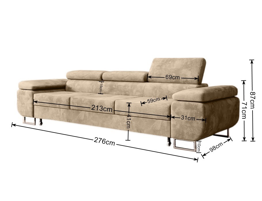 Komfort codziennego relaksu zapewniają regulowane zagłówki. Każdy domownik może dopasować je do swoich potrzeb podczas czytania książki lub wieczornego seansu filmowego. Siedzisko wypełnione sprężynami falistymi oraz pianką gwarantuje wygodę i odpowiednie podparcie ciała. Z kolei funkcja spania przydaje się podczas wizyty gości. Rozkładanie za pomocą automatu Delfin jest szybkie i nie wymaga wysiłku, błyskawicznie tworząc dodatkowe miejsce do snu.