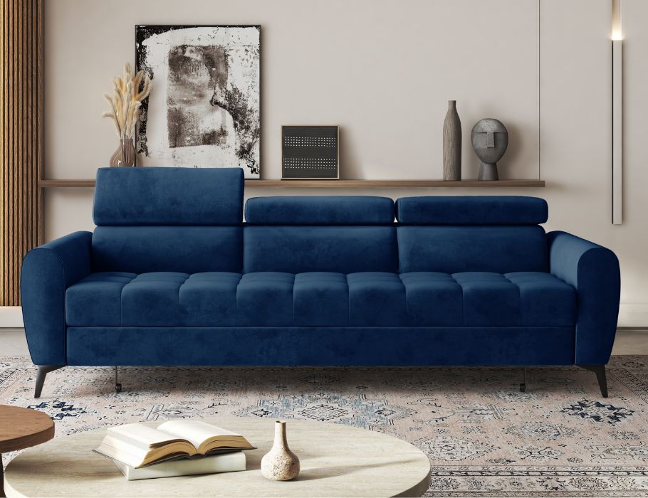 Granatowa kanapa Bjorn staje się sercem salonu, w którym domownicy chętnie spędzają czas. Wprowadza do aranżacji atmosferę przytulnej elegancji. To idealne miejsce na popołudniowy relaks i spotkania z bliskimi w komfortowym otoczeniu.