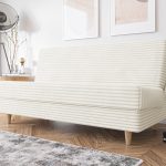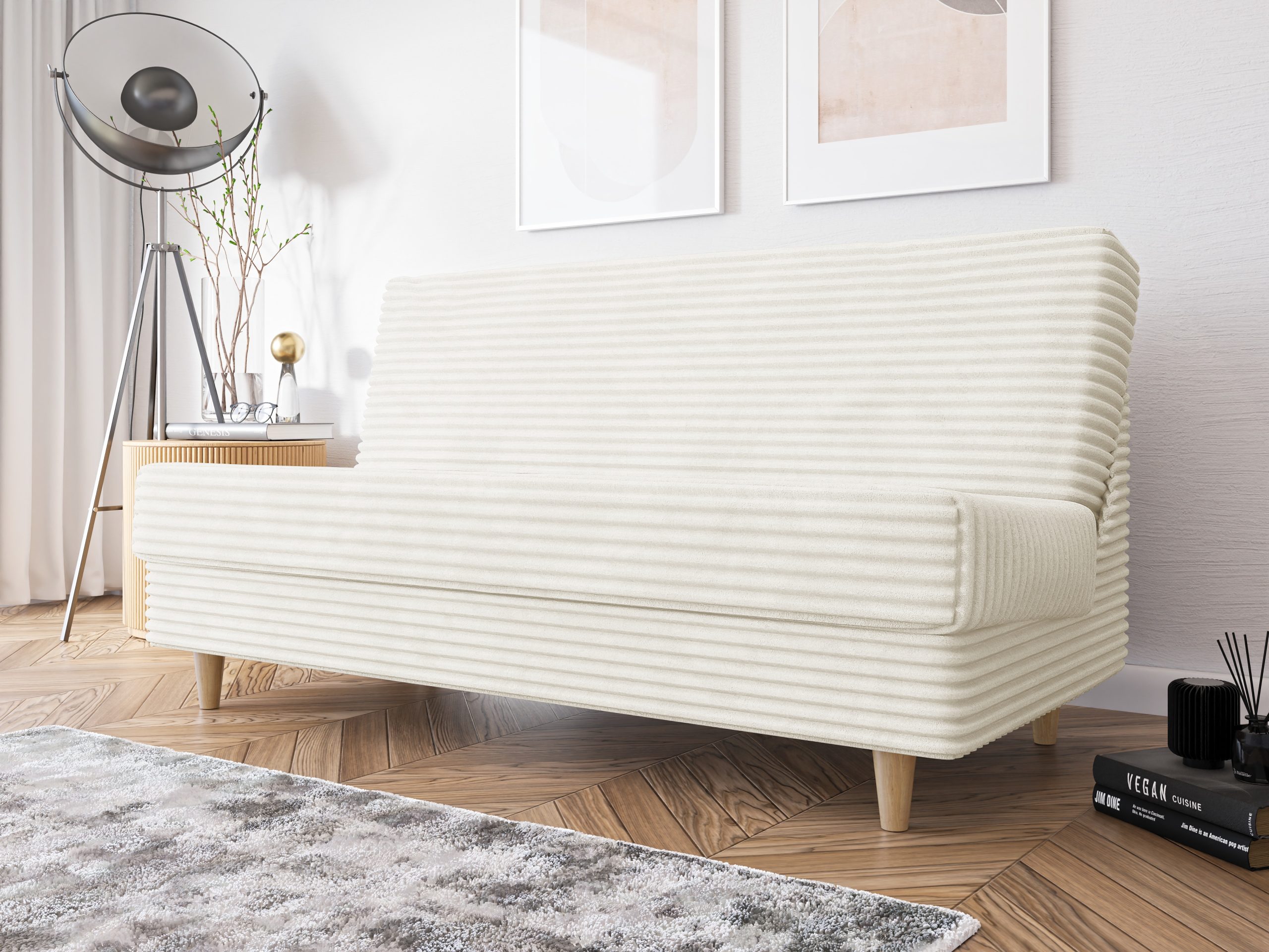 Wersalka z funkcją spania Luna z pojemnikiem na pościel kremowy sztruks