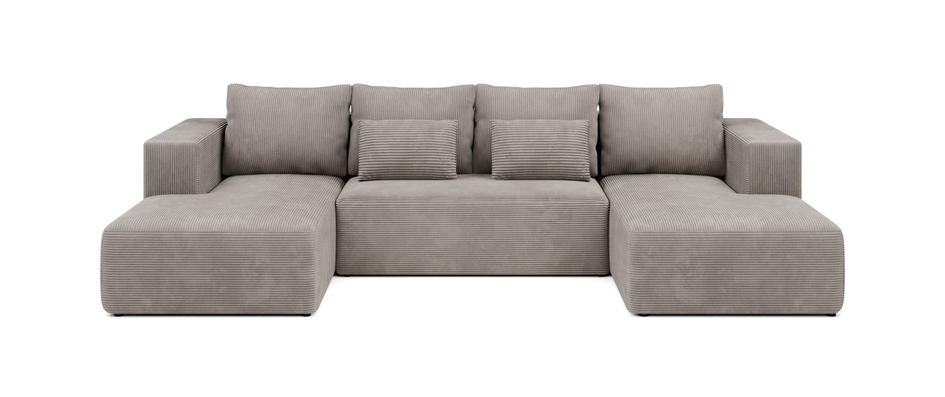 Z beżowym narożnikiem Stripes U strefa wypoczynkowa zyskuje nie tylko styl, ale też niezwykłą funkcjonalność. Staje się ulubionym miejscem do regeneracji sił, radosnych spotkań i spokojnych wieczorów w domowym zaciszu.