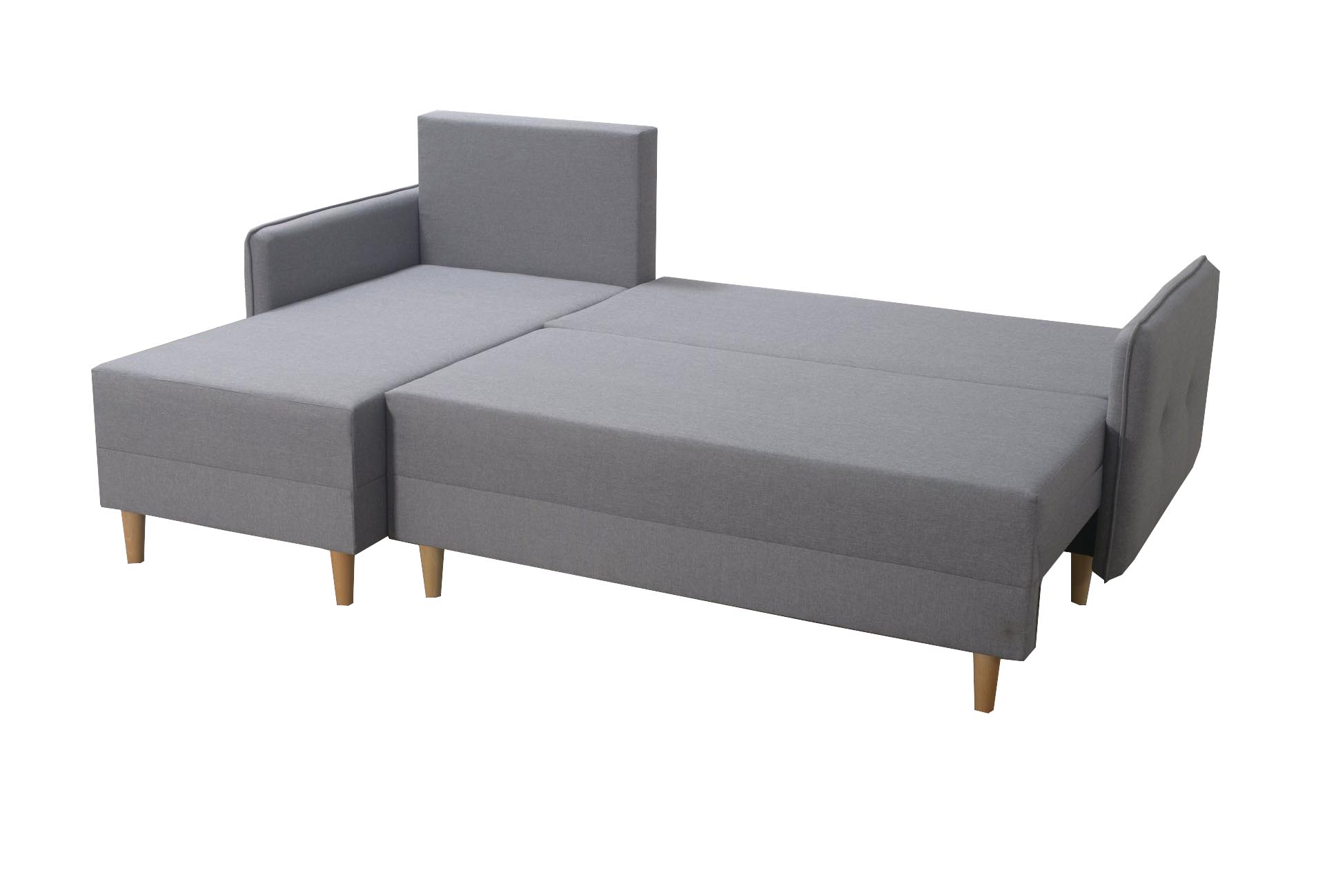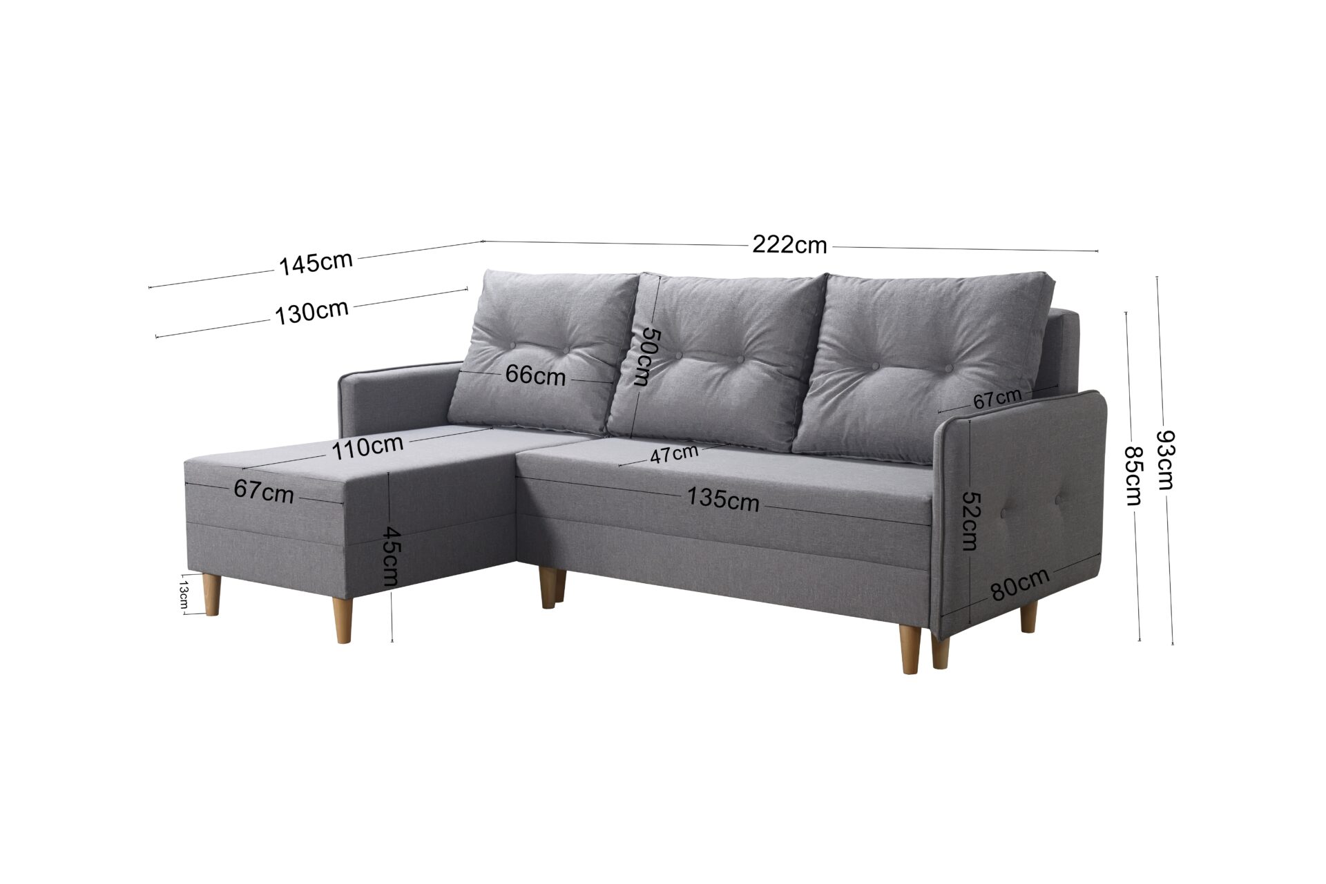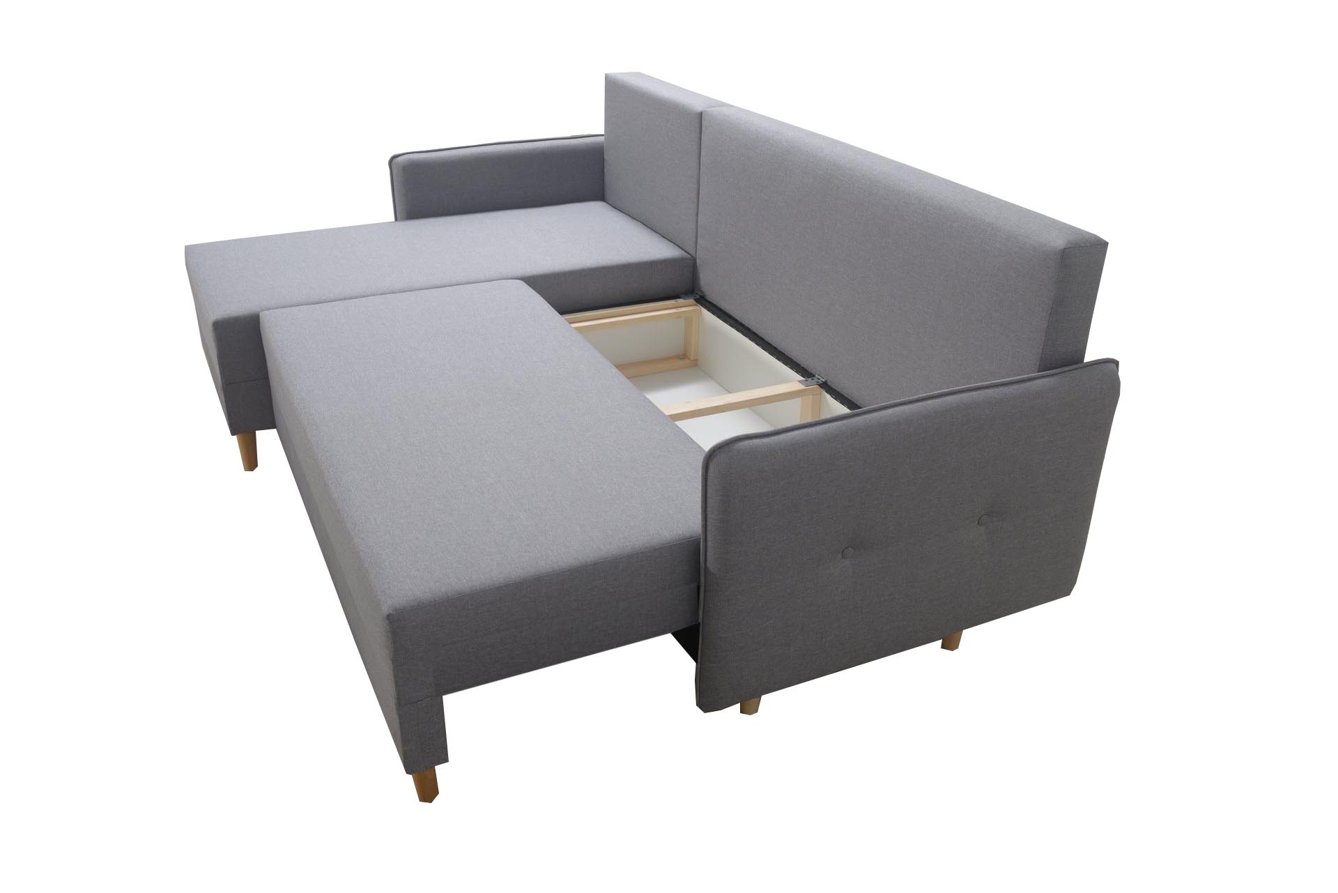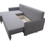 Mebel jest także niezwykle praktyczny. Posiada funkcję spania, którą można łatwo rozłożyć, przygotowując wygodne miejsce dla gości. Duży pojemnik na pościel pomaga z kolei utrzymać porządek w salonie. Można w nim schować dodatkowy komplet pościeli lub ciepłe koce na chłodniejsze wieczory. W ten sposób wszystko, co potrzebne, jest zawsze pod ręką.