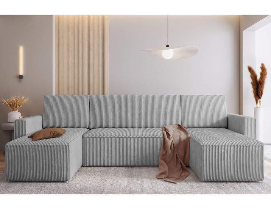 Komfort codziennego wypoczynku zapewniają sprężyny bonellowe oraz pianka poliuretanowa w siedzisku i oparciu. Dzięki temu cała powierzchnia jest sprężysta i doskonale podpiera ciało. Trzy duże poduszki oparciowe pozwalają wygodnie oprzeć plecy podczas czytania książki lub wieczornego seansu filmowego. Rozłożysta forma w kształcie litery U oferuje mnóstwo miejsca dla całej rodziny oraz zaproszonych gości.