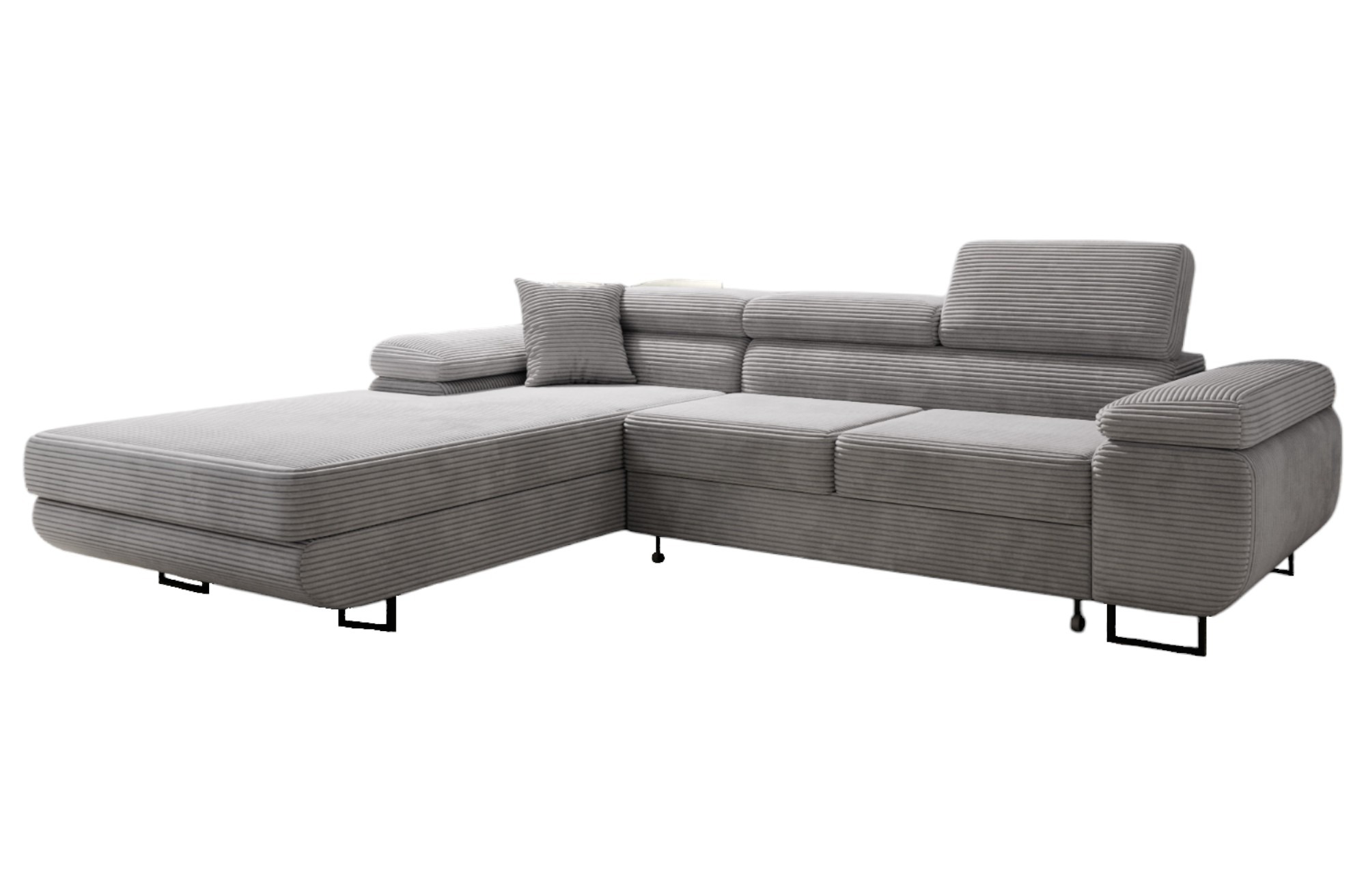 Narożnik Astorp L jest także niezwykle praktyczny. Funkcja spania z mechanizmem rozkładania za pomocą automatu Delfin pozwala szybko przygotować wygodne miejsce dla gości. Co ważne, pod siedziskiem ukryto pojemny schowek na pościel. Sztruksowa tkanina Poso jest przyjazna zwierzętom i ułatwia czyszczenie. Jej specjalna powłoka utrudnia wchłanianie rozlanych płynów. Szary kolor tapicerki sprawia, że codzienne użytkowanie staje się beztroskie.