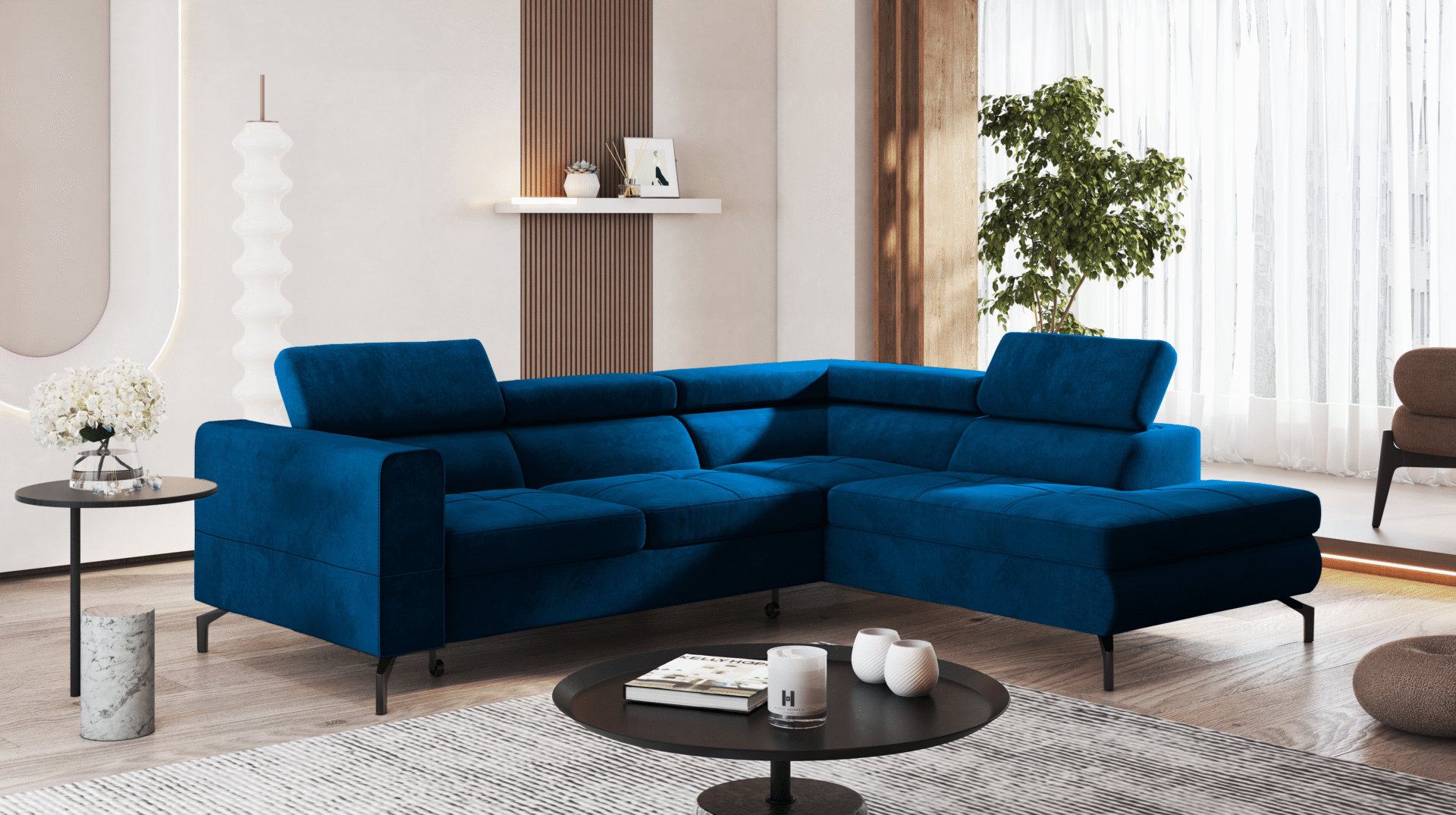 Granatowy narożnik Balsta wnosi do domu atmosferę przytulnej elegancji. Staje się centrum życia rodzinnego, gdzie każdy dzień kończy się w poczuciu komfortu.