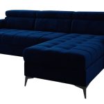 Granatowy narożnik Bjorn wprowadza do wnętrza nowoczesną elegancję w miękkim, welurowym wydaniu.