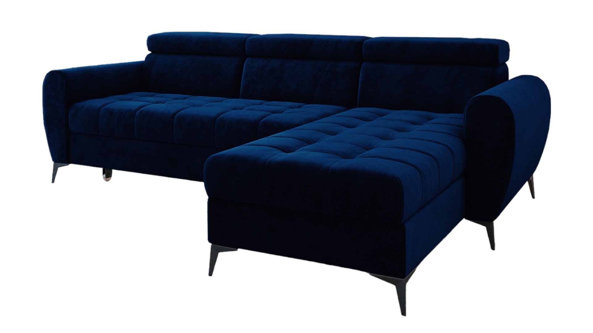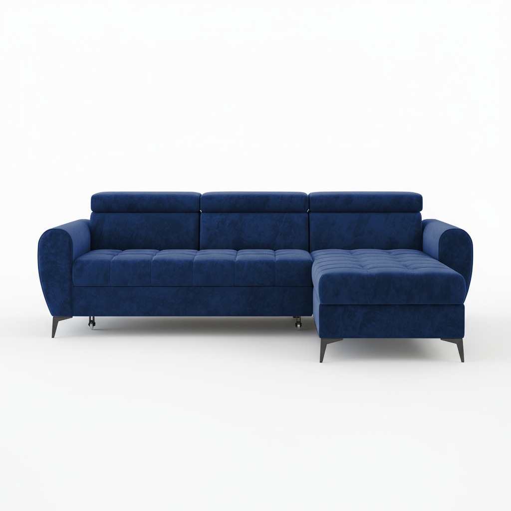Narożnik z funkcją spania Bjorn uniwersalny L-kształtny z regulowanymi zagłówkami granatowy welur