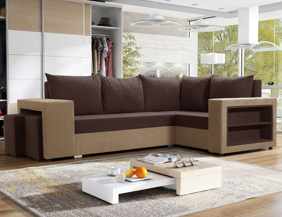 Narożnik Milano w brązowo-beżowym odcieniu to klasyczna propozycja ubrana w miękką tkaninę pluszową.