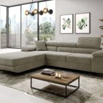 Narożnik wyposażono w intuicyjną funkcję spania. Rozkładanie za pomocą automatu Delfin jest szybkie i nie wymaga wysiłku. W ten sposób w kilka chwil można przygotować wygodne miejsce do snu dla gości. Pojemny pojemnik na pościel pomaga z kolei utrzymać porządek w salonie. Można w nim schować dodatkowe koce i poduszki. Tapicerowany tył mebla pozwala na swobodne ustawienie go w dowolnym miejscu pokoju.