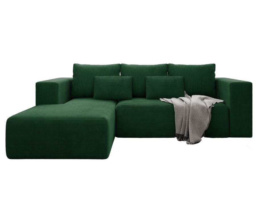 Komfort podczas odpoczynku gwarantuje siedzisko wypełnione sprężynami falistymi i elastyczną pianką. Duże, miękkie poduszki oparciowe pozwalają na komfortowe ułożenie ciała po długim dniu. Dzięki temu narożnik staje się idealnym miejscem na wieczorny relaks z książką lub seans filmowy. Miła w dotyku sztruksowa tkanina dodatkowo potęguje uczucie ciepła.