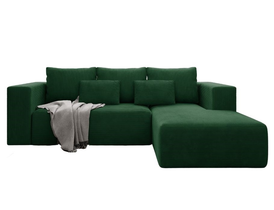 Narożnik posiada praktyczną funkcję spania, idealną dla niespodziewanych gości. Rozkładanie za pomocą automatu DL jest szybkie i nie wymaga wysiłku. Pojemny schowek na pościel pomaga z kolei utrzymać porządek w salonie na co dzień. Sztruksowa tkanina Poso jest przyjazna zwierzętom i łatwa w czyszczeniu. Jej specjalna powłoka utrudnia wchłanianie rozlanych płynów, co czyni codzienne użytkowanie w pełni beztroskim.