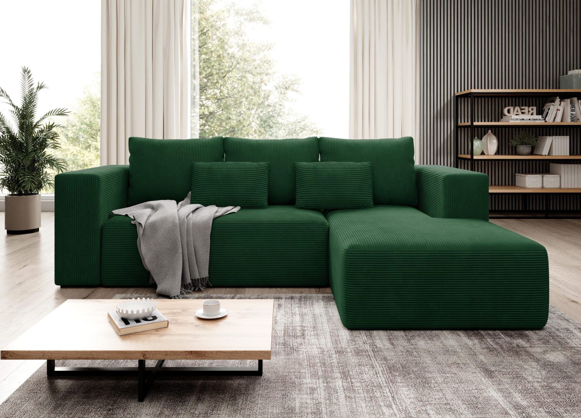 Butelkowozielony narożnik Stripes wnosi do domu ciepło i ponadczasową elegancję. Staje się miejscem, gdzie codzienne chwile nabierają wyjątkowego charakteru.