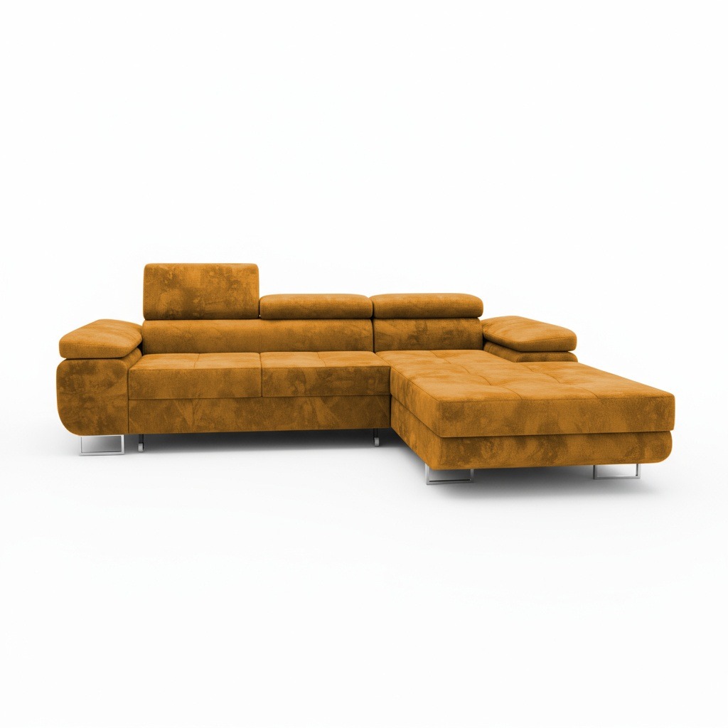 Musztardowy narożnik Norberg stanie się sercem Twojego salonu. Zapewni idealne miejsce do relaksu po pracy, spotkań z bliskimi i spokojnego odpoczynku.