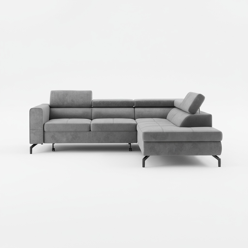 Jego uniwersalna stylistyka odnajdzie się we wnętrzach nowoczesnych oraz klasycznych. Bryła w kształcie litery L naturalnie organizuje przestrzeń w salonie, tworząc przytulny kącik wypoczynkowy. Co ważne, wysokie, czarne nóżki dodają konstrukcji wizualnej lekkości. Tapicerowany tył pozwala z kolei ustawić narożnik w dowolnym miejscu, na przykład na środku pokoju.