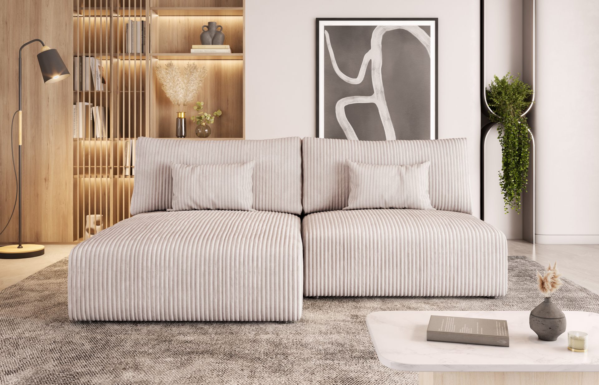 Wybierając narożnik modułowy Modulo w tkaninie sztruks, inwestujesz w mebel, który łączy w sobie nowoczesny styl, wygodę i praktyczne rozwiązania. Sprężyny faliste, funkcja spania na automacie DL oraz pojemnik na pościel totylko niektóre z zalet, które sprawią, że Twój salon stanie się miejscem idealnym do odpoczynku i spotkań z bliskimi. Postaw na elegancję i funkcjonalność z narożnikiem Modulo.