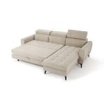 Narożnik Bjorn jest przygotowany na każdą okazję. Nocujący goście docenią wygodną funkcję spania. Rozkładanie za pomocą automatu Delfin jest szybkie i nie wymaga wysiłku. Z kolei duży pojemnik ukryty w otomanie pozwala zachować porządek w salonie. Można w nim przechowywać dodatkową pościel lub ciepłe koce. Welur Monolith jest przyjazny zwierzętom i ułatwia czyszczenie dzięki właściwościom ograniczającym wchłanianie płynów.