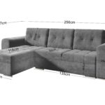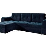 Jego klasyczna bryła w kształcie litery L doskonale komponuje się z różnymi aranżacjami. Pasuje zarówno do wnętrz nowoczesnych, jak i tych o bardziej tradycyjnym charakterze. Granatowa tapicerka z weluru dodaje głębi i tworzy przytulną atmosferę. Dzięki temu salon staje się idealnym miejscem do wieczornego relaksu. Całość osadzono na niskich, chromowanych nóżkach, które subtelnie podkreślają jego szlachetny wygląd. Co ważne, tapicerowany tył pozwala swobodnie ustawić mebel w dowolnym miejscu pokoju.