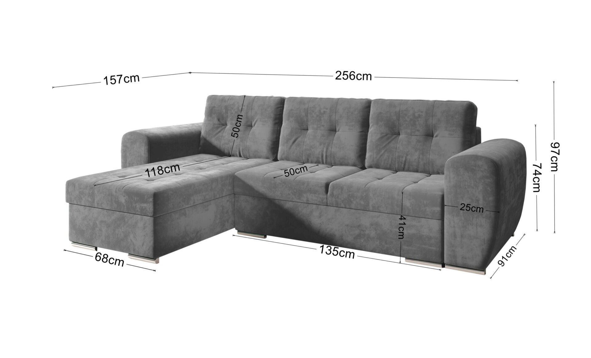 Siedzisko wypełnione sprężynami falistymi oraz pianką zapewnia wysoki komfort siedzenia. W ten sposób narożnik staje się ulubionym miejscem do spędzania czasu z rodziną. Miękkie poduszki oparciowe zachęcają do odpoczynku z książką lub podczas filmowego seansu. Tkanina Monolith jest wyjątkowo praktyczna w codziennym użytkowaniu. Jej welurowa struktura jest przyjazna zwierzętom i odporna na zadrapania. Dodatkowo utrudnia wchłanianie rozlanych płynów. Dlatego plamy można łatwo usunąć za pomocą wody.