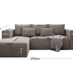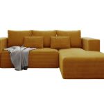 Oto musztardowy narożnik Stripes, otulony miękką i modną sztruksową tkaniną. Jego prosta bryła wnosi do wnętrza poczucie spokoju oraz ponadczasowej elegancji.