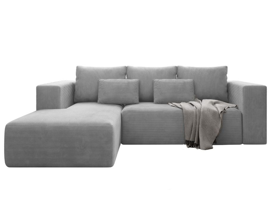 Szary narożnik Stripes jest przygotowany na wszystkie scenariusze domowego życia. Rozkładanie za pomocą automatu DL pozwala w kilka chwil przekształcić go w wygodne łóżko dla gości. Pojemny schowek na pościel pomaga z kolei utrzymać porządek, mieszcząc zapasowe kołdry i poduszki. Sztruksowa tkanina Poso jest wyjątkowo praktyczna. Technologia utrudnionego wchłaniania cieczy sprawia, że rozlane napoje nie wsiąkają od razu w materiał. W ten sposób drobne zabrudzenia można łatwo usunąć wodą.