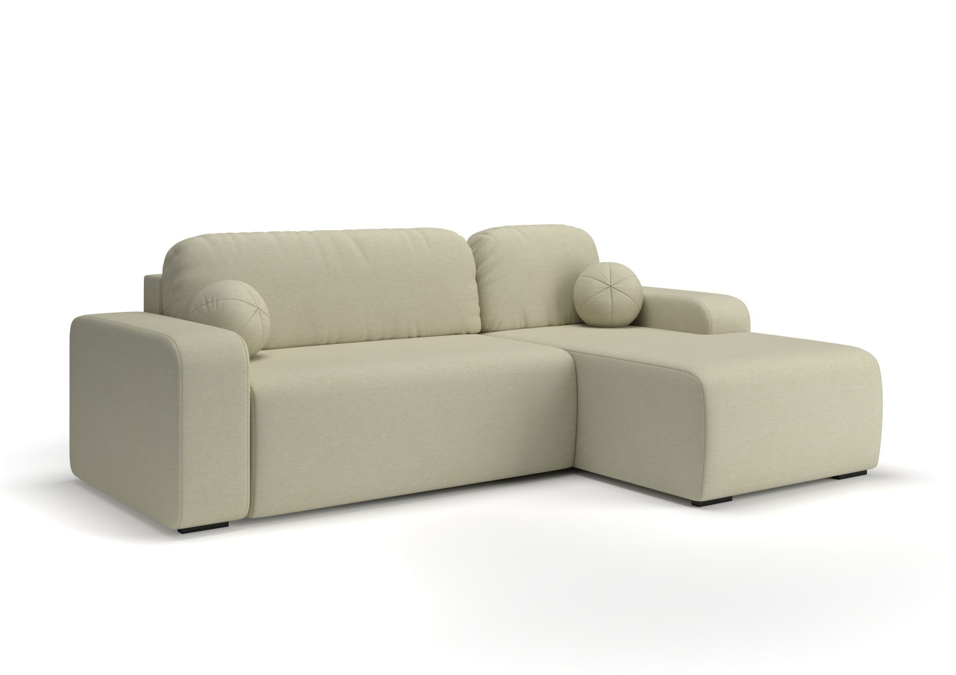 Do narożnika dołączono dwie ozdobne poduszki w kształcie piłek oraz dwie miękkie poduszki oparciowe. Dzięki nim Tori nabiera niepowtarzalnego charakteru i świetnie prezentuje się w nowoczesnych wnętrzach, jednocześnie zachowując przytulny klimat sprzyjający relaksowi.